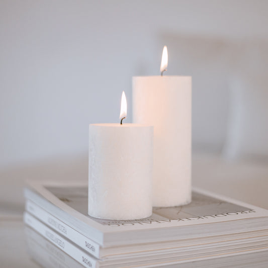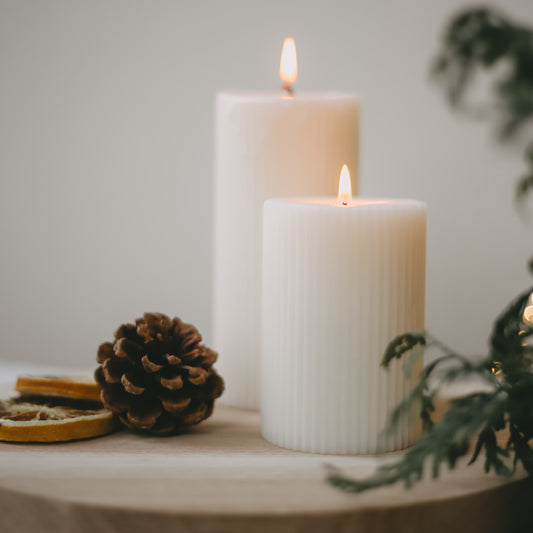 Blockkerze Rillen - 7 x 15cm - Weiß