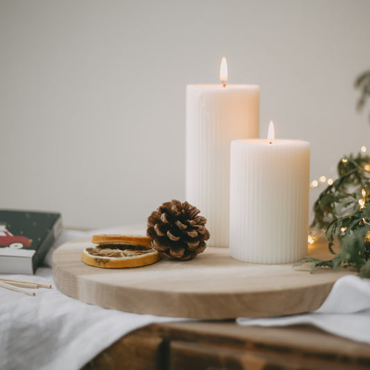 Blockkerze Rillen - 7 x 10cm - Weiß