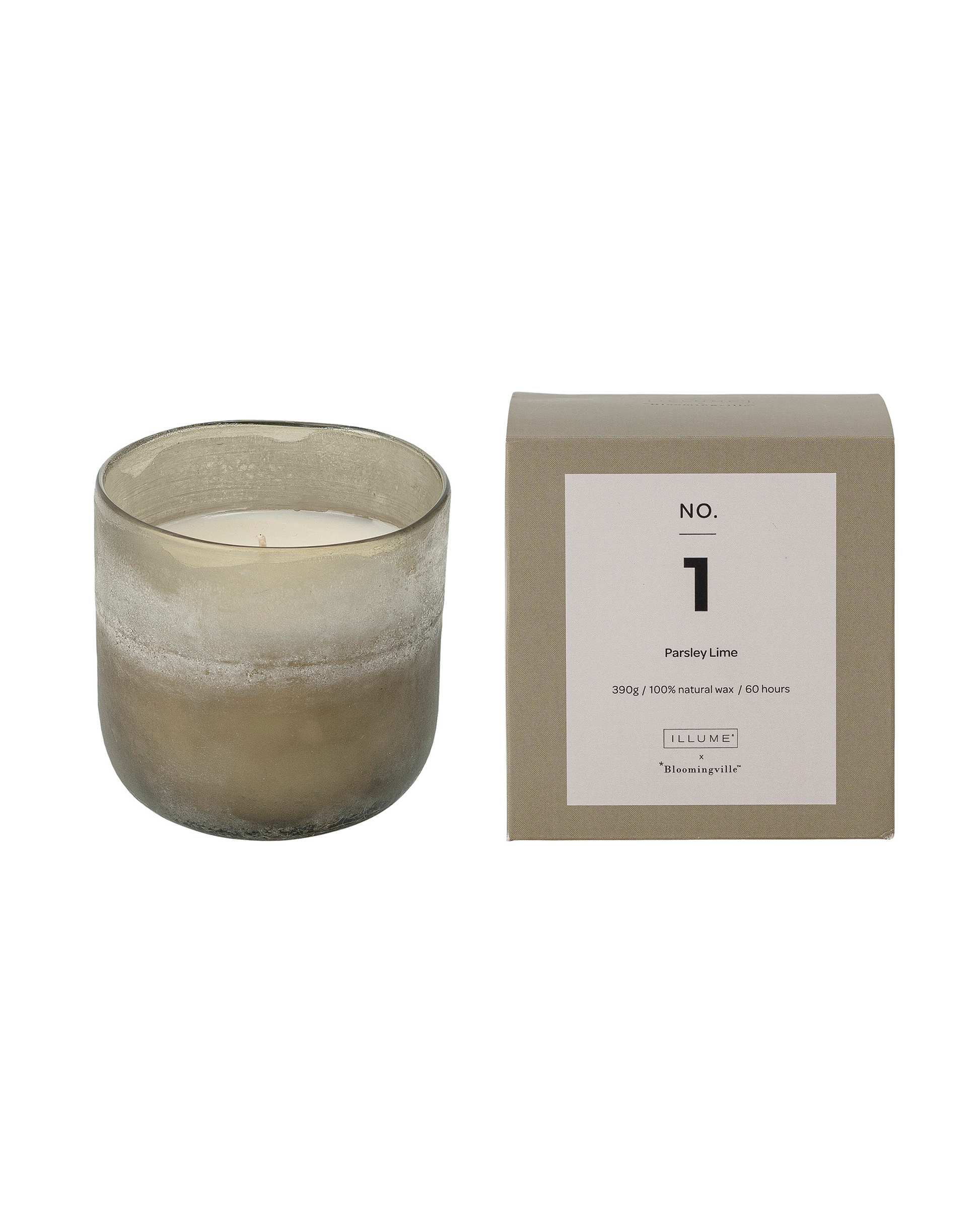 Die Nr. 1 Parsley Lime Duftkerze von ILLUME x Bloomingville verleiht dem Zuhause Frische! Die Duftkerze ist aus natürlichem Wachs in einem handgefertigten Mattglas in einem staubigen Grünton gefertigt, das in jedes Zuhause passt. Mit frischen Duftnoten von Zitrone, Petersilie und Lime verleiht die Duftkerze jedem Raum eine angenehme Frische. Ganz gleich, ob Sie sie im Badezimmer, Wohnzimmer oder Schlafzimmer nutzen, sorgt sie für eine entspannte und einladende Atmosphäre. Die Duftkerze ist in einer ansprechenden Geschenkschachtel erhältlich – perfekt für jeden Anlass.