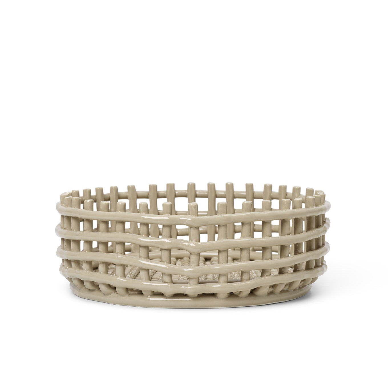 Unsere handgemachten Ceramic Centrepieces erwecken das vertraute Gefühl von geflochtenen Behältern und bringen die traditionelle Korbflechterei zur Keramik. Dieses multifunktionale Design eignet sich ideal als Obst- oder Brotkorb und ist bei jeder Tischdekoration bestimmt ein zentraler Bestandteil. Die von Hand geformten und auf kunstvolle Art uneben gefertigten Stücke sind jeweils einzigartig.