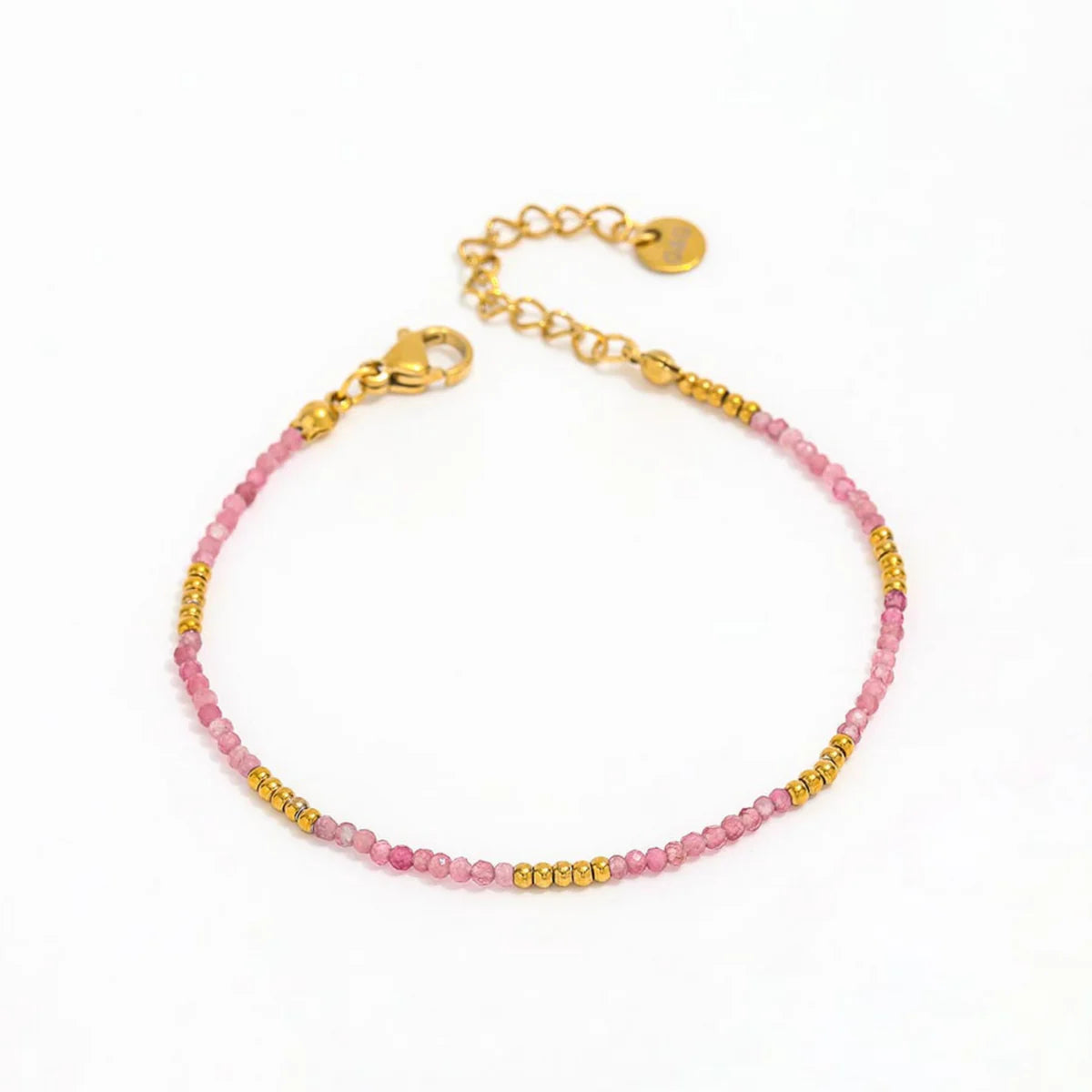 Das Armband Chennai von Glam & Glory vereint filigrane Eleganz mit der kraftvollen Ausstrahlung echter Edelsteine. Handgefertigt aus zarten Edelsteinperlen und vergoldeten Edelstahl-Elementen, strahlt es eine edle Leichtigkeit aus und verleiht deinem Look eine stilvolle, natürliche Note.