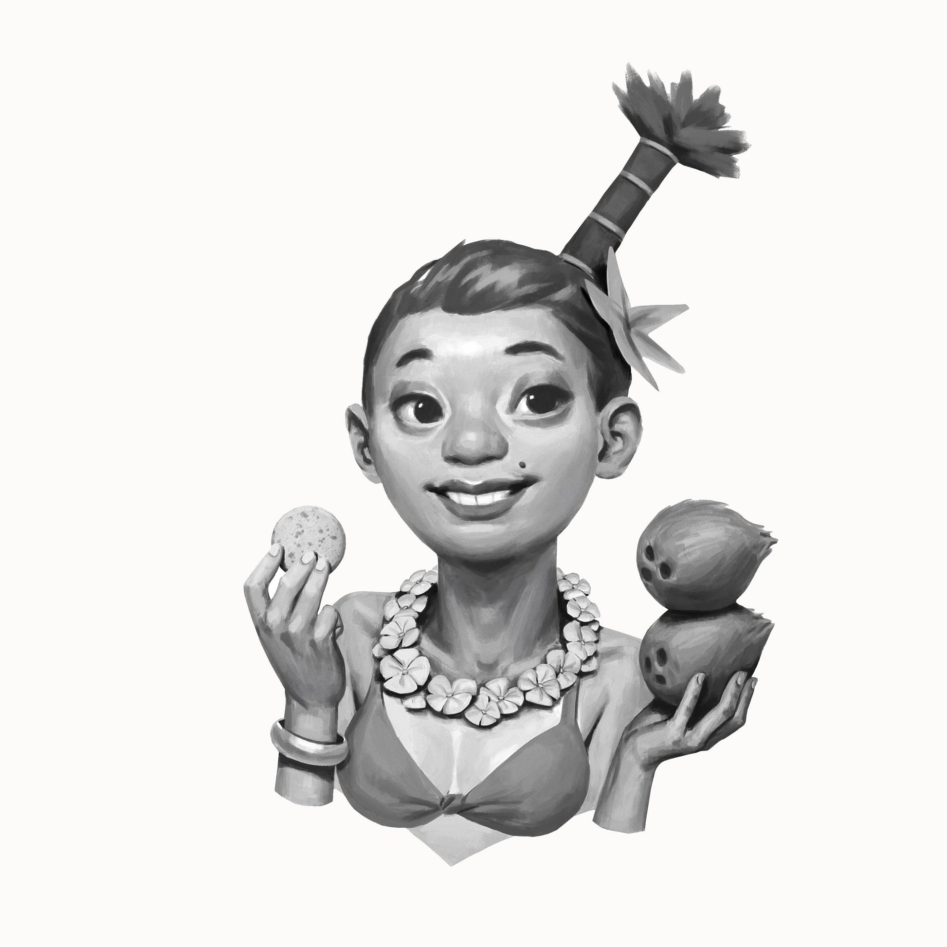 Wo Colette aufgewachsen ist, lächeln die Leute die ganze Zeit. Ihre Zähne sind so weiß wie das Innere einer Kokosnuss und ihre Großzügigkeit so groß wie die größte Kokospalme. Eines Tages verfehlte eine Kokosnuss kaum den Kopf von Colette, die unter den Zweigen einer Palme ruhte.