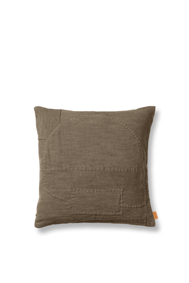 Das Darn-Kissen, das in Zusammenarbeit mit der Künstlerin Leise Dich Abrahamsen entstanden ist, weist monochrome, übereinander gelagerte Patchwork-Details und überdimensionierte Handnähte auf. Das weiche Kissen aus einer Baumwoll-Leinen-Mischung verleiht seiner Umgebung eine texturierte, taktile Erscheinung.