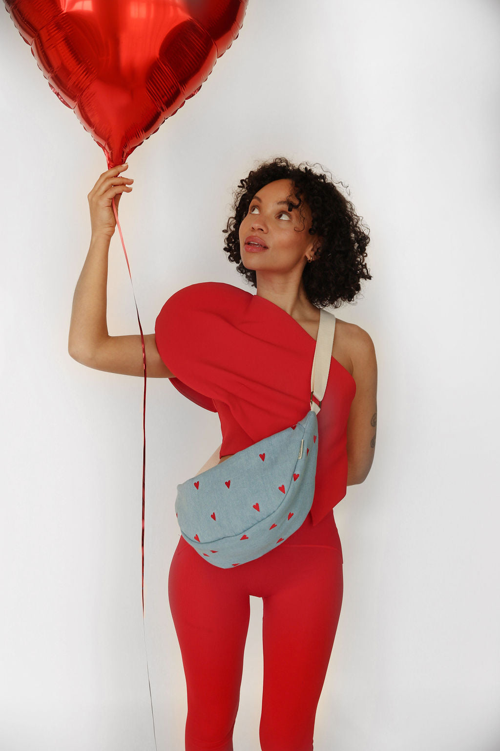 - Stylisches Fanny Pack mit Denim-Hearts-Print
