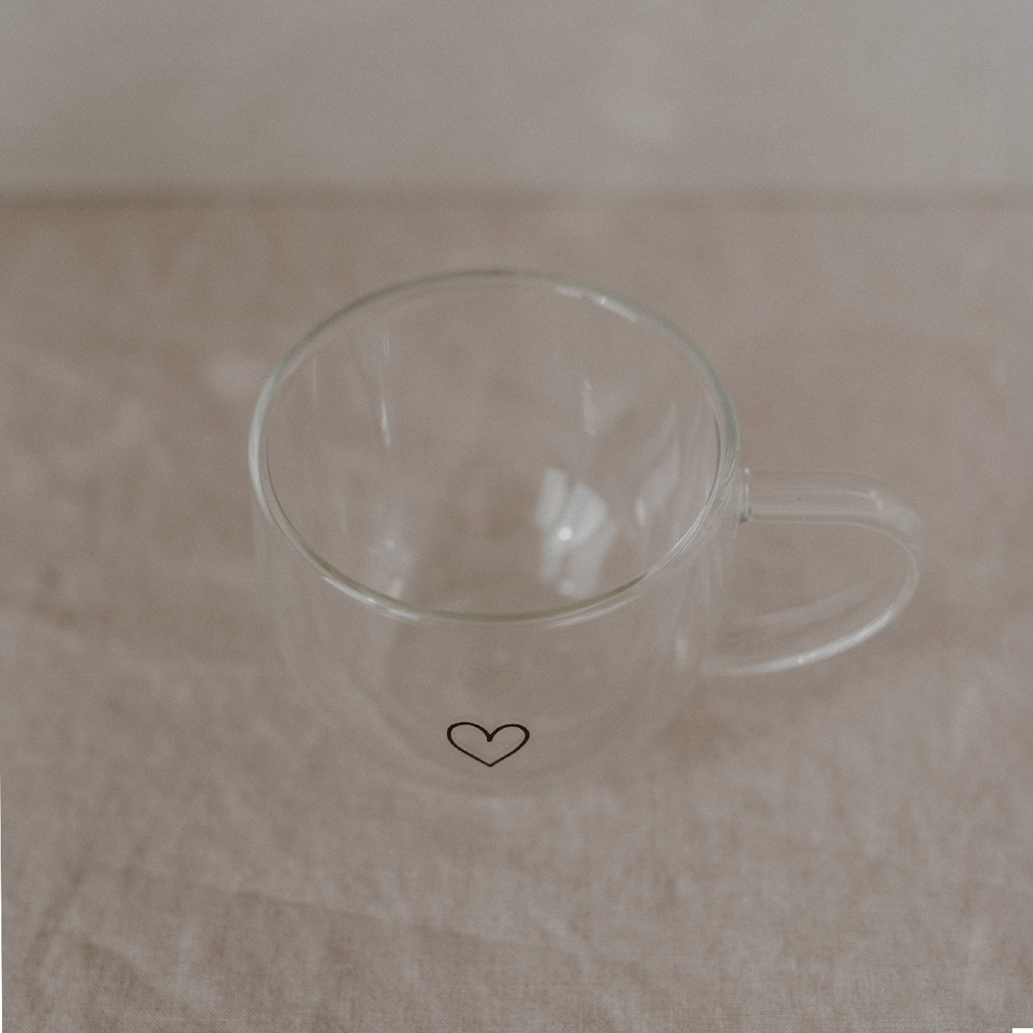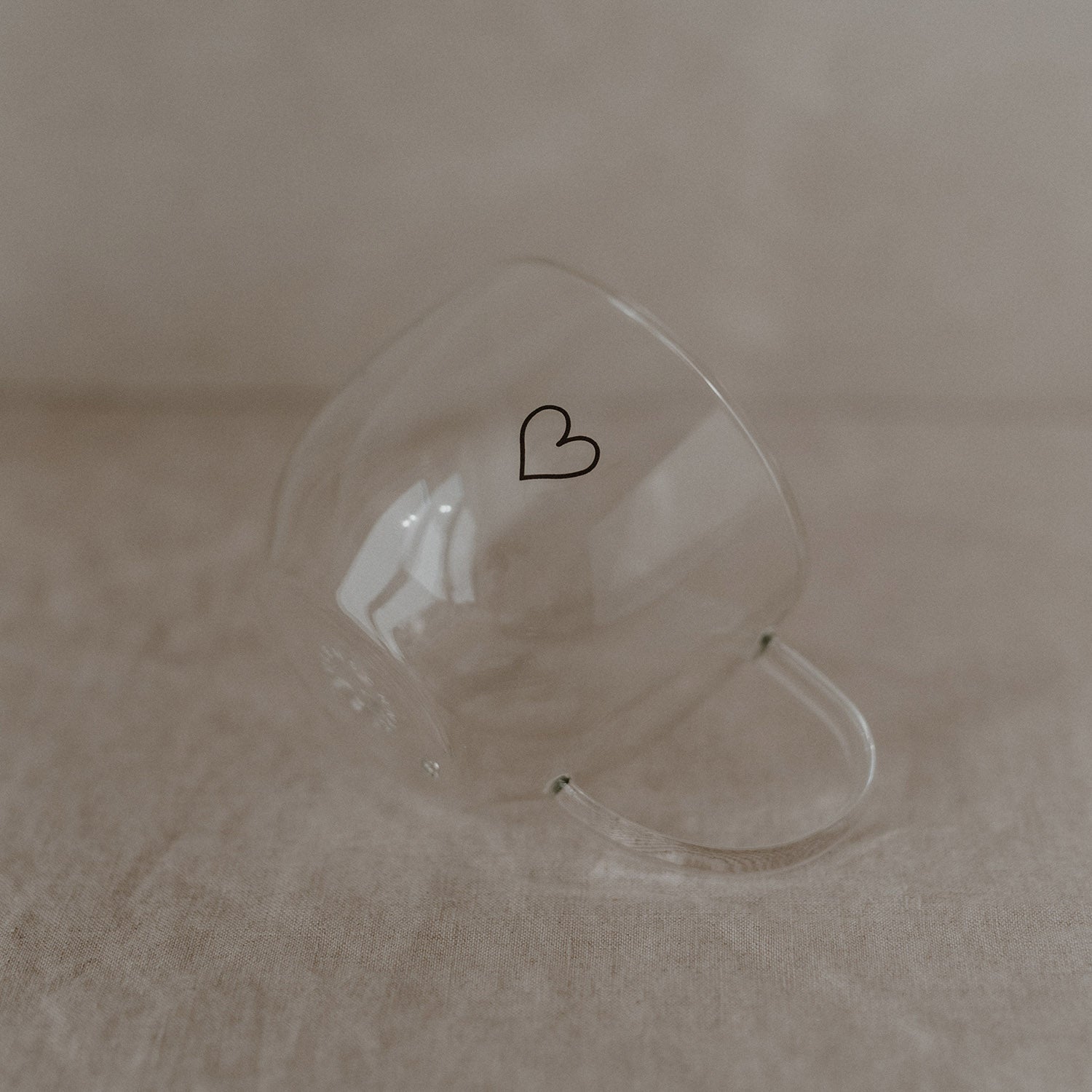 Das perfekte Glas für deinen Tee am Morgen, Mittag oder Abend - unser doppelwandiges Glas Herz mit einem Füllvolumen von 250ml.