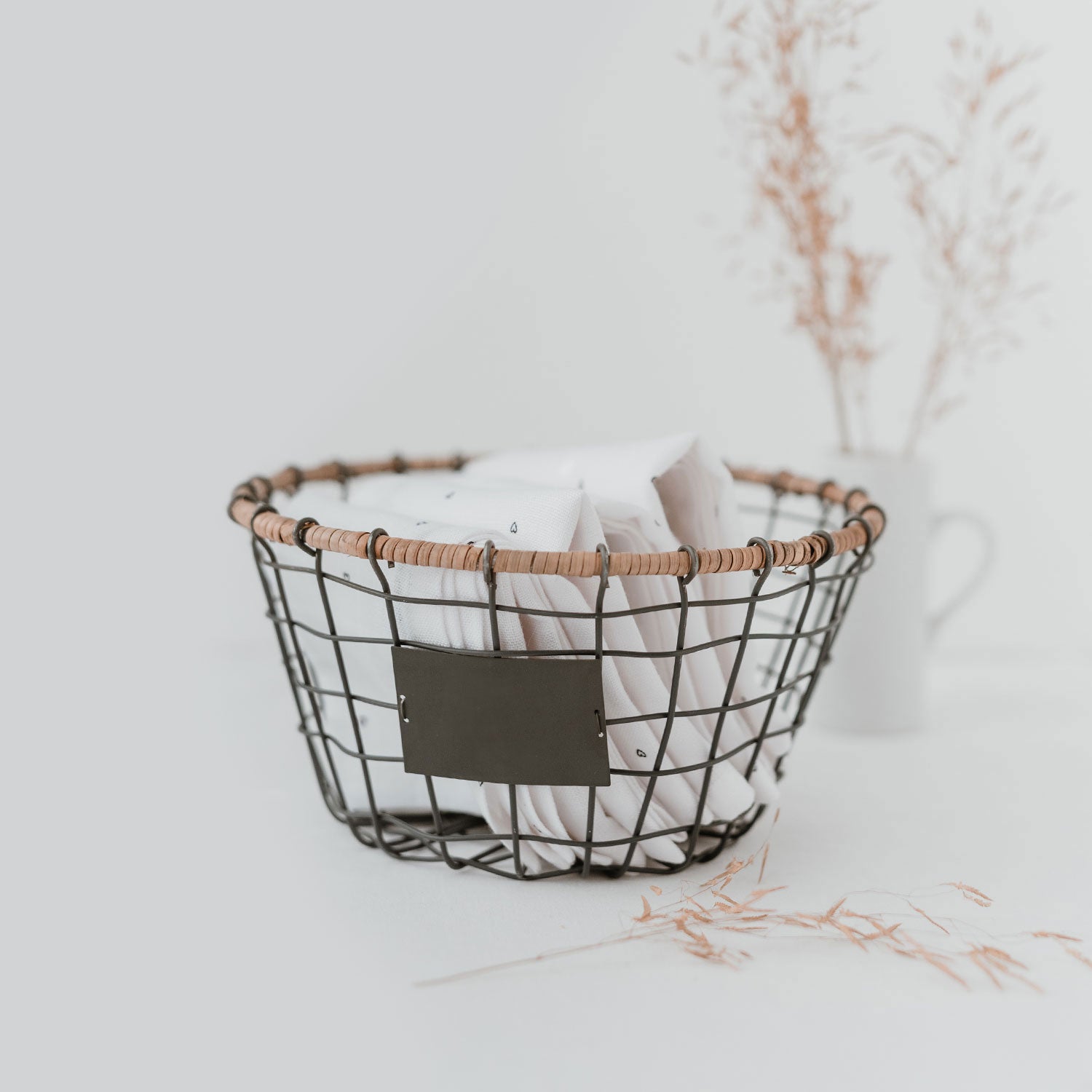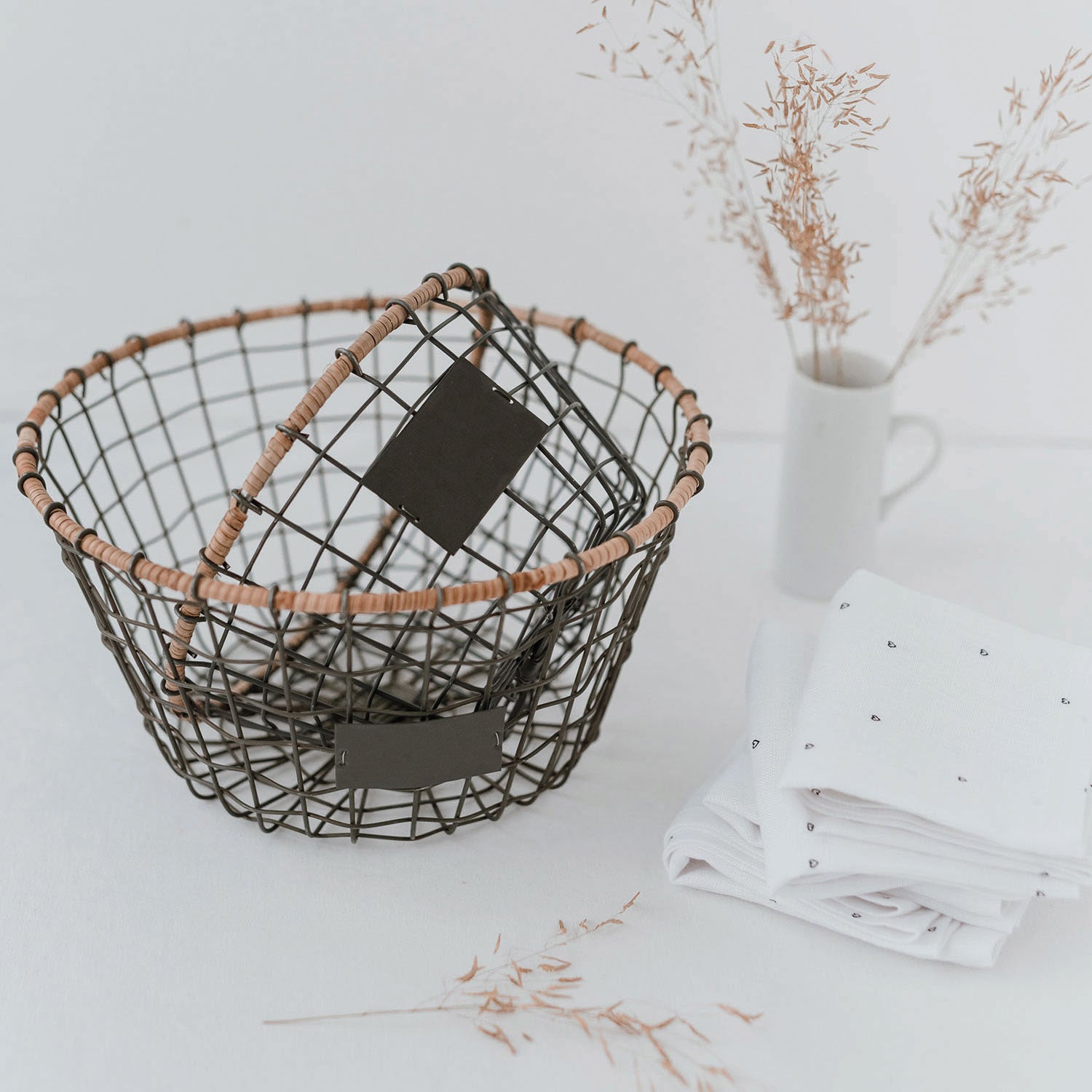 So macht Aufbewahren und Sortieren so richtig Spaß – den Drahtkorb könnt ihr für jede Möglichkeit nutzen. Ob für Eure Vorräte, für Handtücher im Gästebad, für eure Kleinigkeiten, die nicht mehr rumfliegen sollen oder als Osternest! Alle Körbe werden in liebevoller Handarbeit hergestellt. Der Kontrast zwischen dem Metall und dem Rand aus natürlicher Holzfaser geben ihnen das gewisse Etwas. Auf dem Drahtkorb selber befindet sich eine kleine Fläche für dich, damit du den Korb ganz nach deinen Wünschen beschriften kannst.