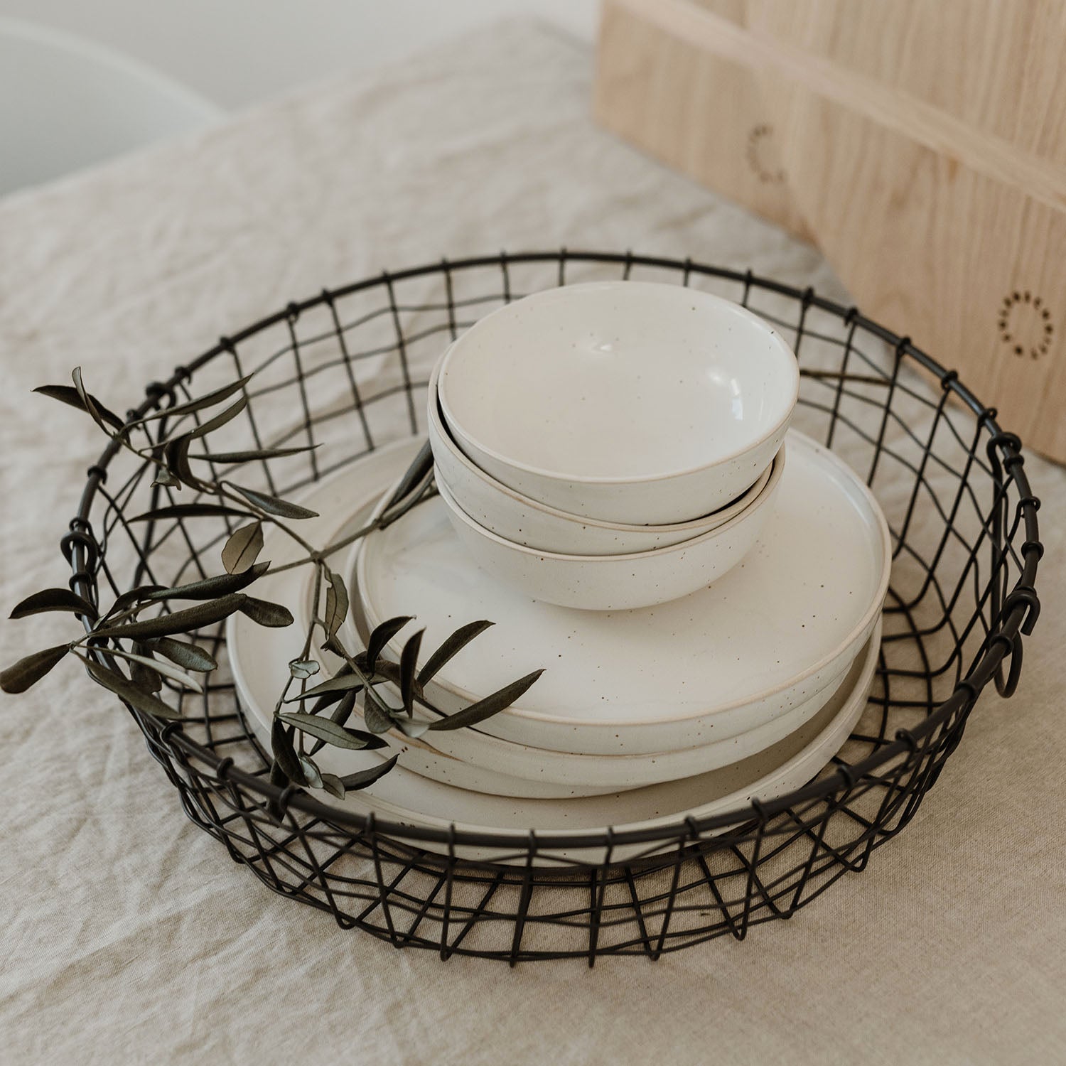 So macht Aufbewahren und Sortieren so richtig Spaß - unseren handgemachter Drahtkorb rund 38cm könnt ihr für jede Möglichkeit nutzen. Ob für Eure Vorräte, für Handtücher im Gästebad oder auch für eure Kleinigkeiten, die nicht mehr rumfliegen sollen! Unser Drahtkorb ist auch super als Tablett oder als Deko auf dem Tisch. All unsere Körbe werden in liebevoller Handarbeit hergestellt. Der Kontrast zwischen dem Metall und dem Rand aus natürlicher Holzfaser geben ihnen das gewisse Etwas. Auch perfekt als tolle Geschenkverpackung!