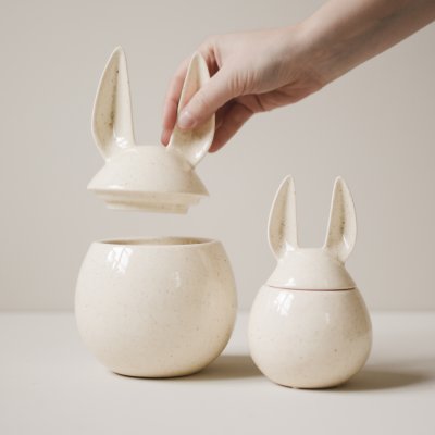 Der Eating Rabbit ist nicht nur ein dekorativer Hingucker, sondern auch eine praktische Aufbewahrungsdose in liebevoller Hasenkopf-Form. In einem zarten Vanille-Ton gehalten, fügt sich dieses charmante Keramikstück perfekt in jede Frühlings- und Osterdekoration ein. Mit seinem freundlichen Ausdruck und den sanften Rundungen strahlt der Hase eine warme, einladende Atmosphäre aus.