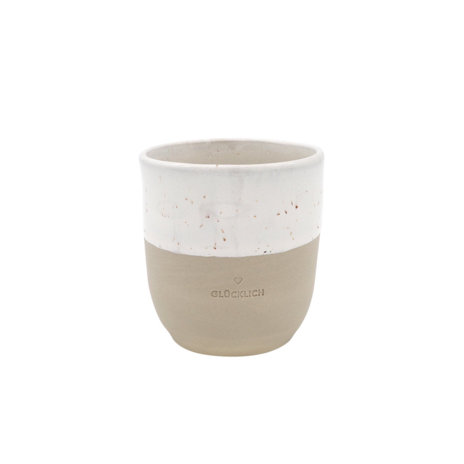 Eulenschnitt hat sehr viel Herzblut in eine neue Kollektion gesteckt, die von der Form, dem Ton, dem Glazing, sowie dem Design von Eulenschnitt entwickelt wurde. Eine kleine Töpferei aus Portugal produziert diese wundervollen Becher in liebevoller Handarbeit & ist ein großartiger neuer Begleiter auf unserem kreativen Weg. Die Becher lassen die Herzen höher schlagen, die die Individualität von Ton & Glasur lieben, denn jeder einzelne Becher hat seinen ganz eigenen Touch. Da alle Becher mit der Hand gefertigt, gebrannt, geprägt, abgeschliffen, geglazt & nochmal gebrannt werden, gibt es Unterschiede in der Drucktiefe, in der Höhe sowie der Geradlinigkeit. Das minimalistische Design und die natürlichen Farbnuancen werden von einer wunderschönen Blindprägung “Glücklich” abgerundet.