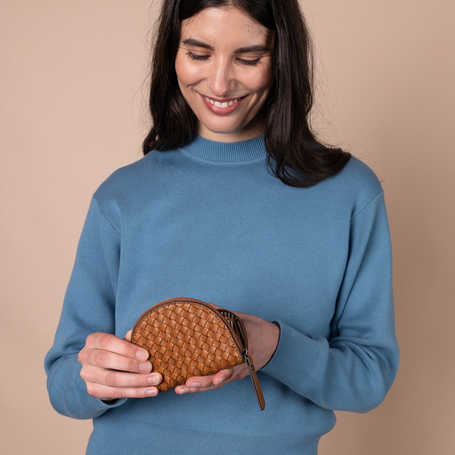 Geldbörse Laura - Cognac - Gewebtes Klassisches Leder