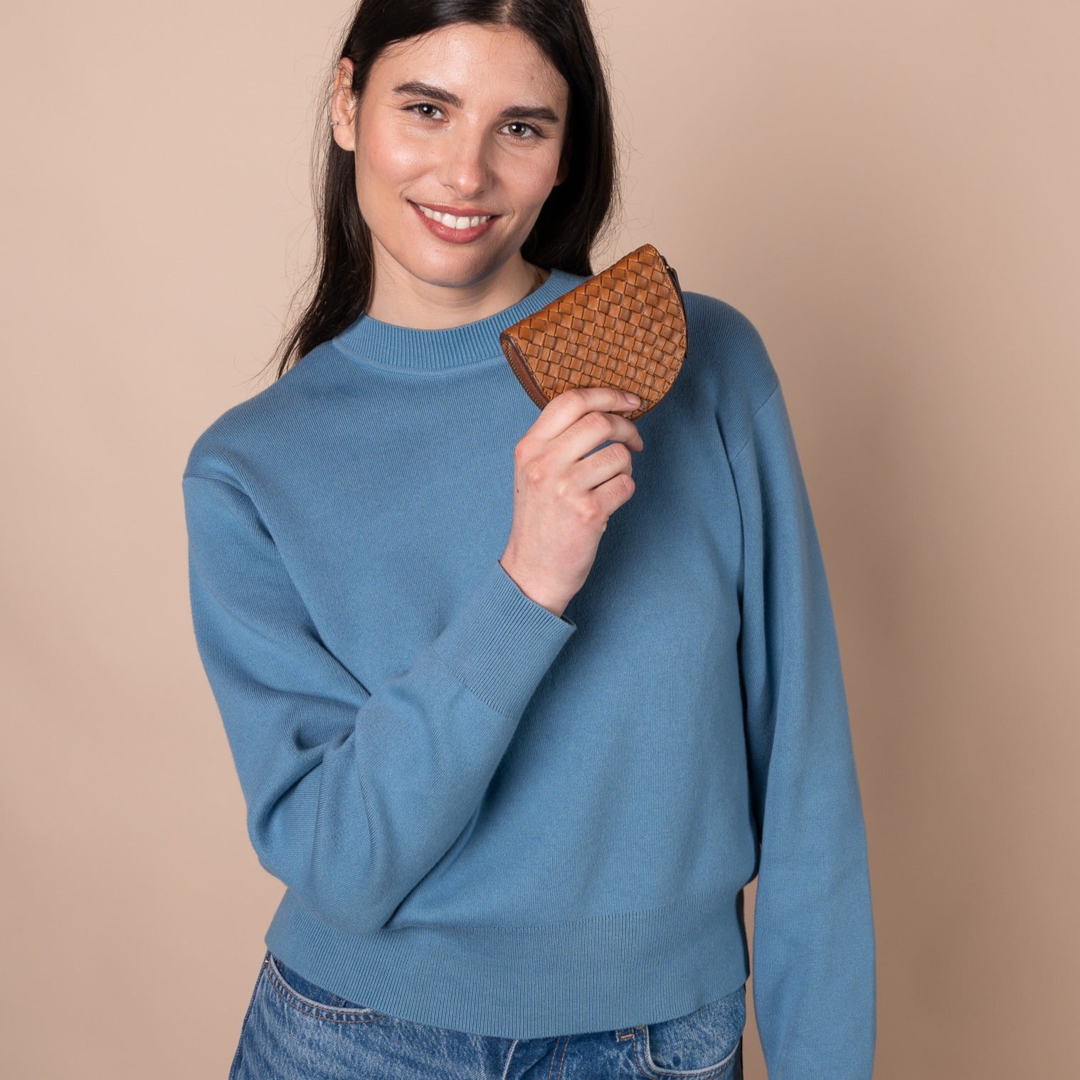 Die Laura Geldbörse in Cognac gewebtem Leder ist genau die richtige Größe und Form für alltägliche Bedürfnisse, die in keiner Handtasche fehlen dürfen.