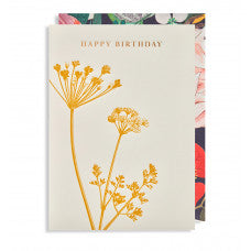 Elegante Klappkarte „Happy Birthday“ mit goldener Blume