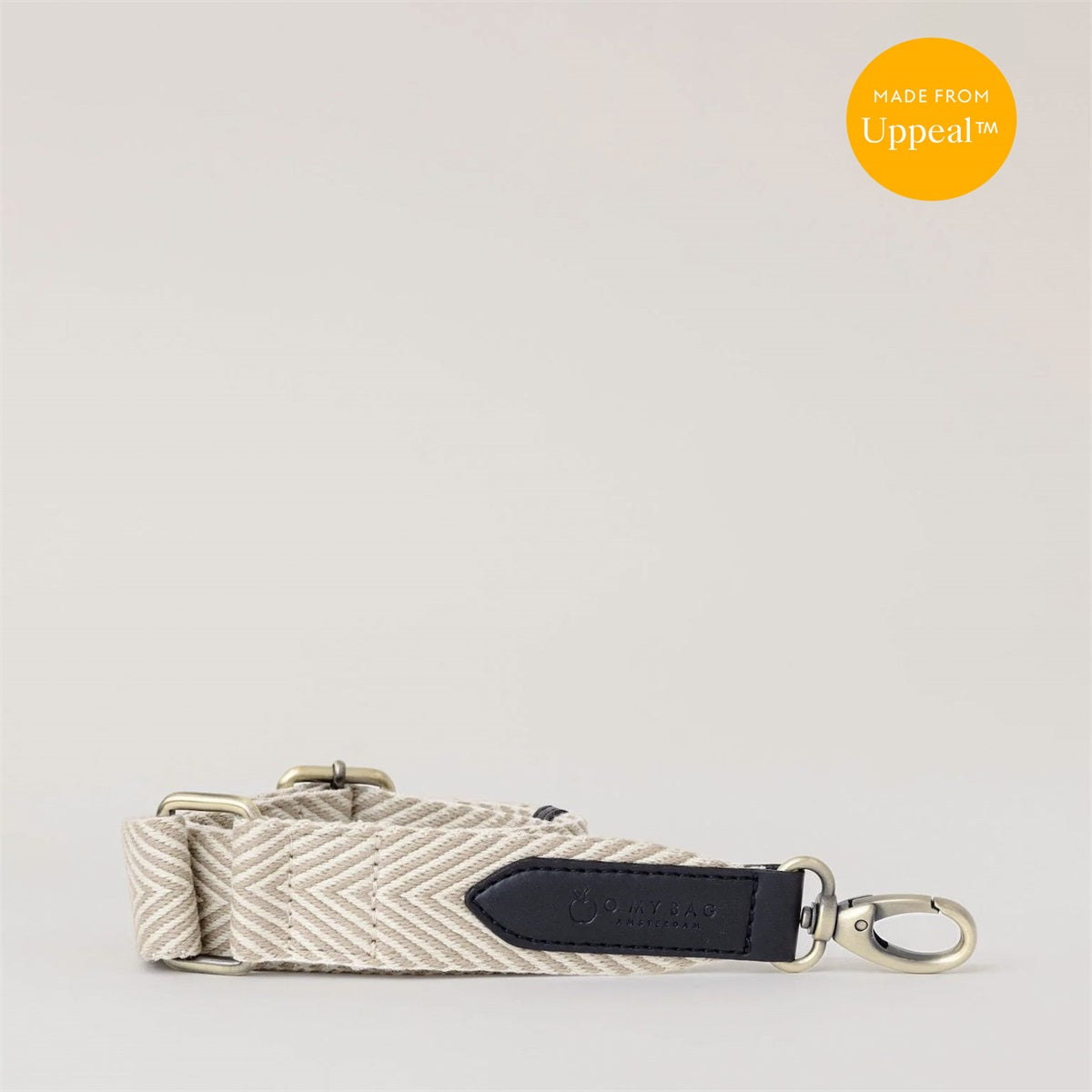 Du möchtest dein O My Bag Accessoire aufwerten? Unser sandfarbener Fischgrätenmuster Gurtband ist das perfekte Add-On für alle, die eine neutrale Farbpalette bevorzugen. Das aktualisierte Design ist mit einer Breite von 4 cm etwas schmaler als unsere ursprünglichen Gurtbänder. Dieser Gurt kann bei allen O My Bags mit abnehmbarem Gurt-Design eingesetzt werden und verleiht deiner Tasche eine stilvolle Note. Dieser Gurt ist vollständig vegan und besteht aus unserem Vegan Uppeal™, damit du dich frei und ohne Schuldgefühle bewegen kannst!
