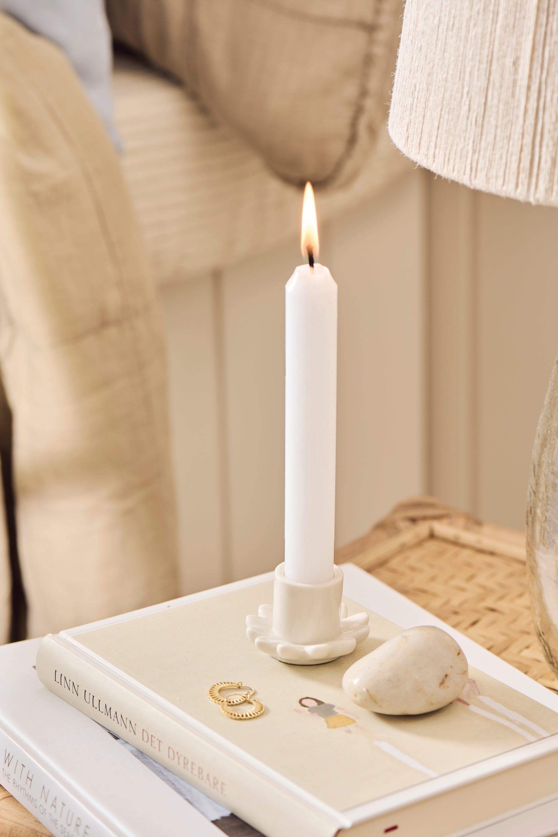 Dieser wunderschöne Kerzenhalter vereint florale Leichtigkeit mit stilvoller Schlichtheit. Sein Sockel, der an eine zarte Blüte erinnert, verleiht ihm eine besondere, organische Ästhetik. Gefertigt für Kerzen mit einem Durchmesser von 2,2 cm, sorgt er für eine stimmungsvolle Atmosphäre – ob einzeln oder in Kombination mit weiteren Kerzenhaltern. Perfekt für einen Hauch von Romantik und zeitloses Design in deinem Zuhause!