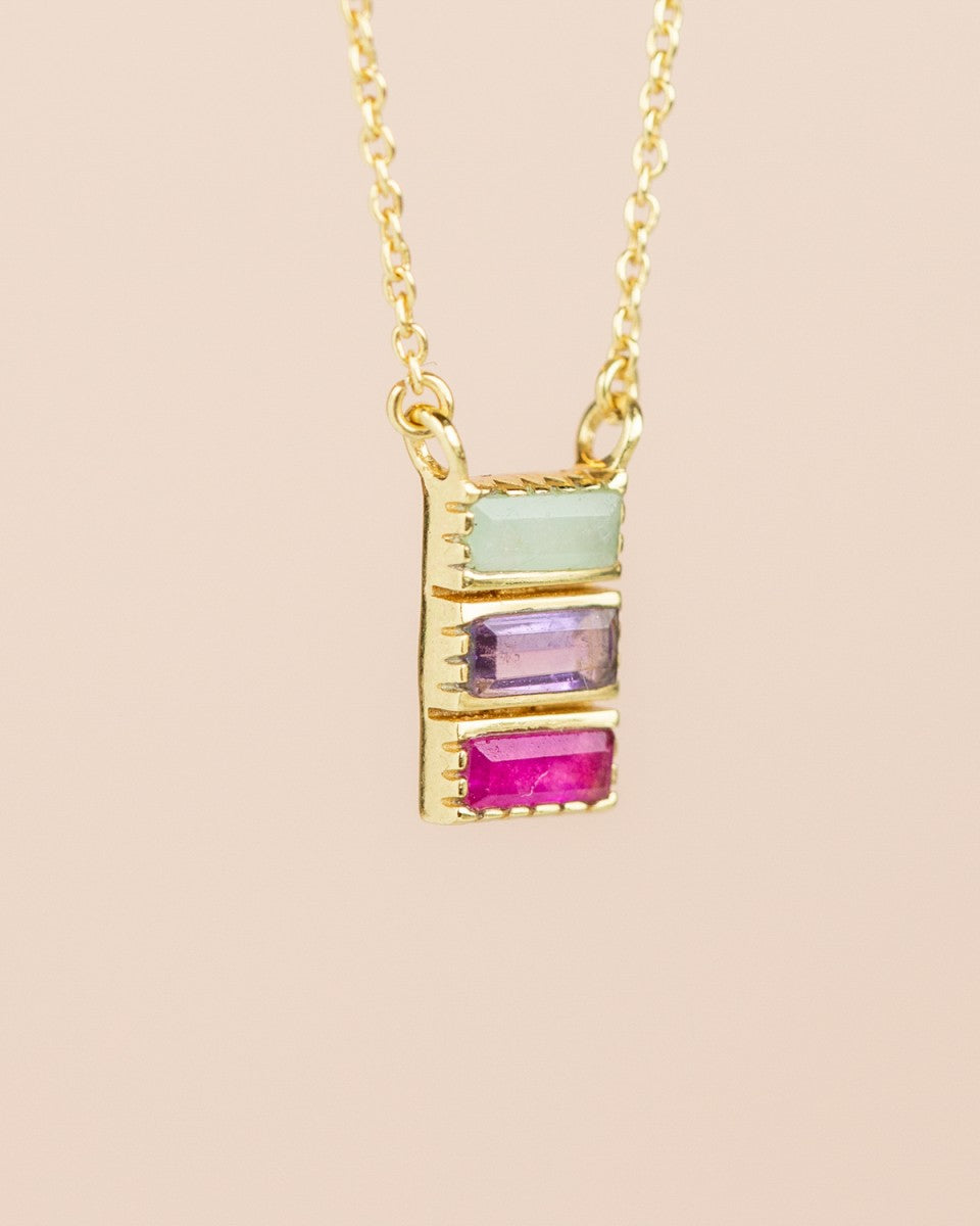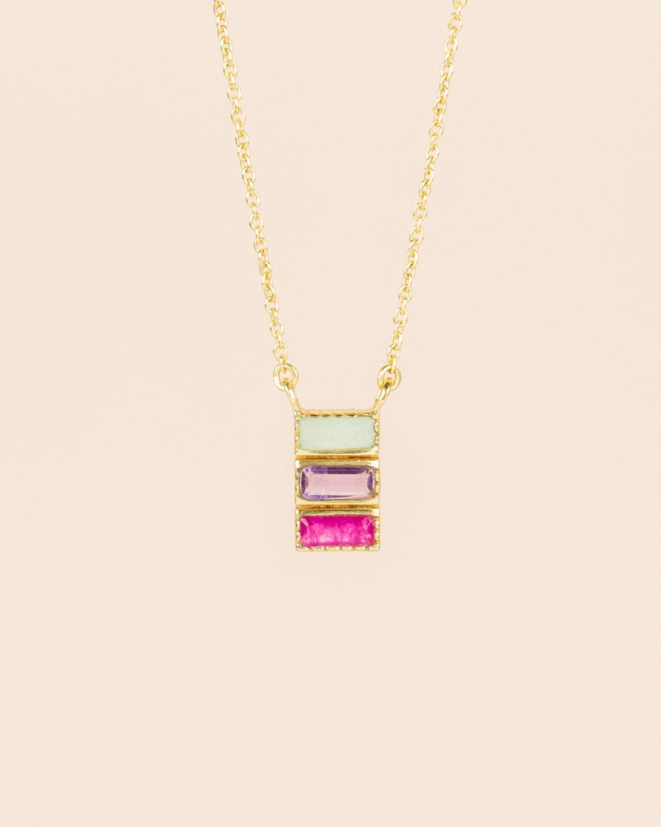 Collier mit 2x5mm rechteckigem Amazonit, Amethyst und Rubin, vergoldetes Sterling Silber