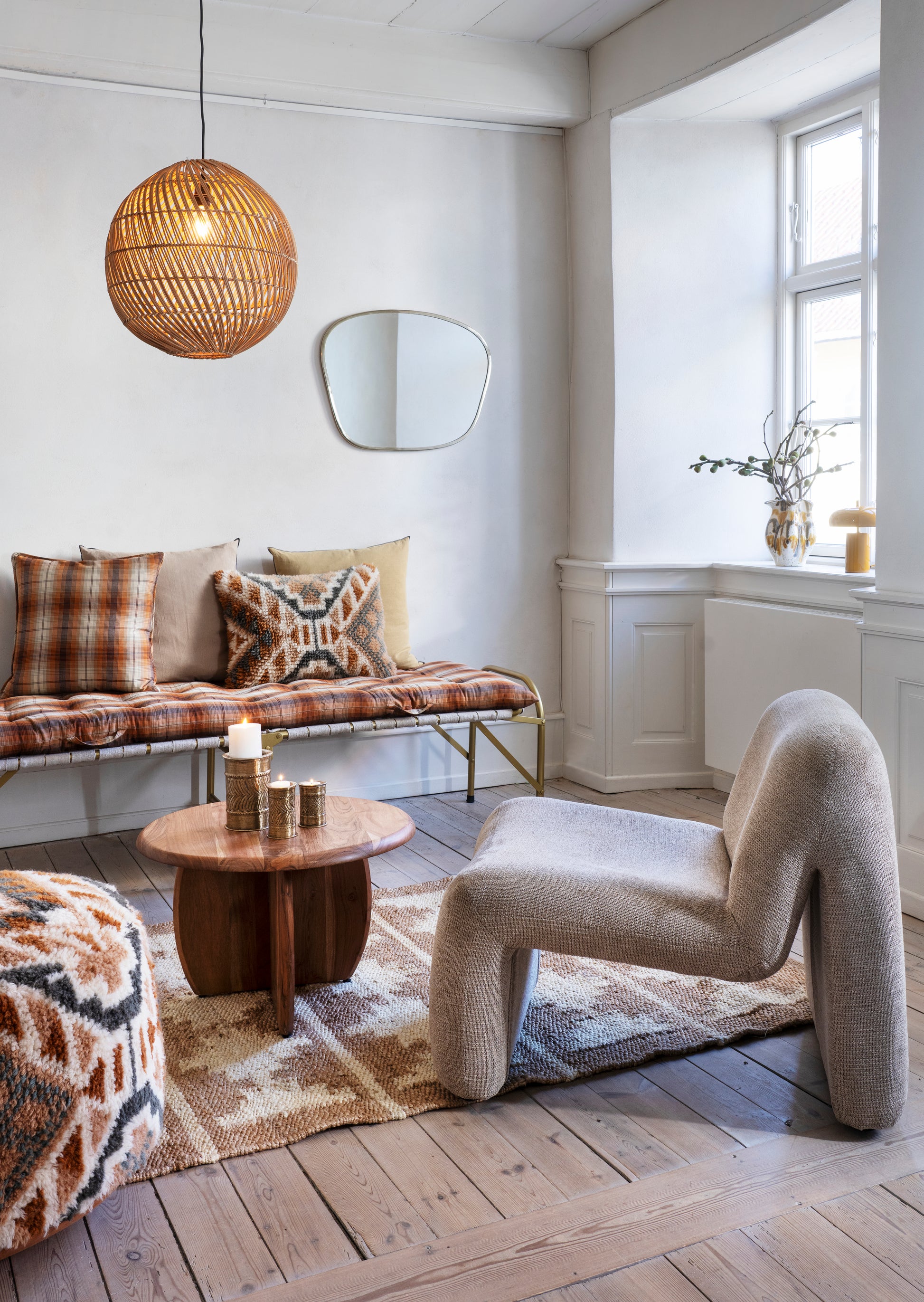 - 80% Wolle, 20% Baumwolle. Füllung: Kissenfüllung aus Öko-Tex-zertifiziertem Baumwollstoff, gefüllt mit Entenfedern, die zu 100 % aus Resten der Lebensmittelindustrie stammen. Die Kissen werden lokal in Dänemark hergestellt. Sie können bei 40 °C in der Maschine gewaschen und im Wäschetrockner getrocknet werden.