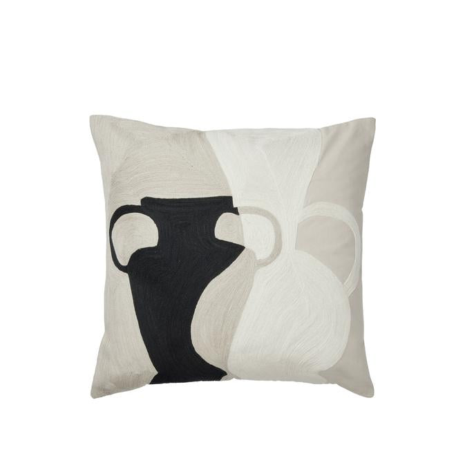 Dieser edle Kissenbezug aus hochwertiger Baumwolle bringt moderne Eleganz und Struktur in jeden Raum. Die aufwendige Stickerei zeigt zwei Vasen in harmonischen Beige- und Schwarztönen und verleiht dem Kissen einen einzigartigen, texturierten Look. Ob auf dem Sofa, Sessel oder Bett platziert – dieser Kissenbezug setzt stilvolle Akzente und fügt sich nahtlos in jedes Interieur ein. Perfekt, um Ihrer Einrichtung eine ruhige, kunstvolle Note zu verleihen.