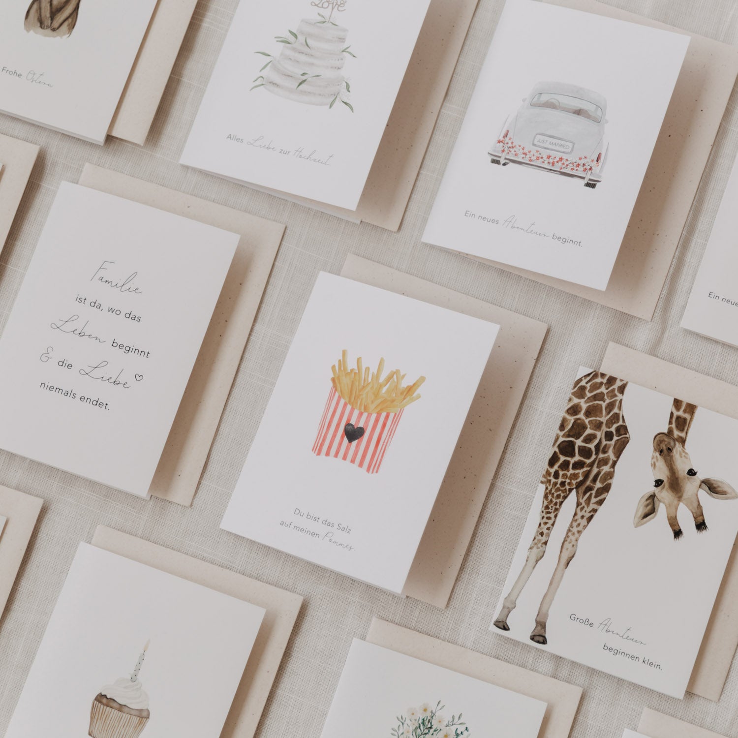 Die Eulenschnitt Klappkarte „Giraffe“ ist eine charmante Karte für besondere Grüße. Das handgezeichnete Motiv einer Giraffe kombiniert verspieltes Design mit minimalistischer Eleganz. Dank des hochwertigen Naturpapiers und der nachhaltigen Produktion ist sie nicht nur ein Gruß, sondern auch ein kleines Kunstwerk. Die Innenseiten sind blanko und bieten viel Platz für persönliche Worte – perfekt für Geburtstage, Glückwünsche oder einfach zwischendurch.