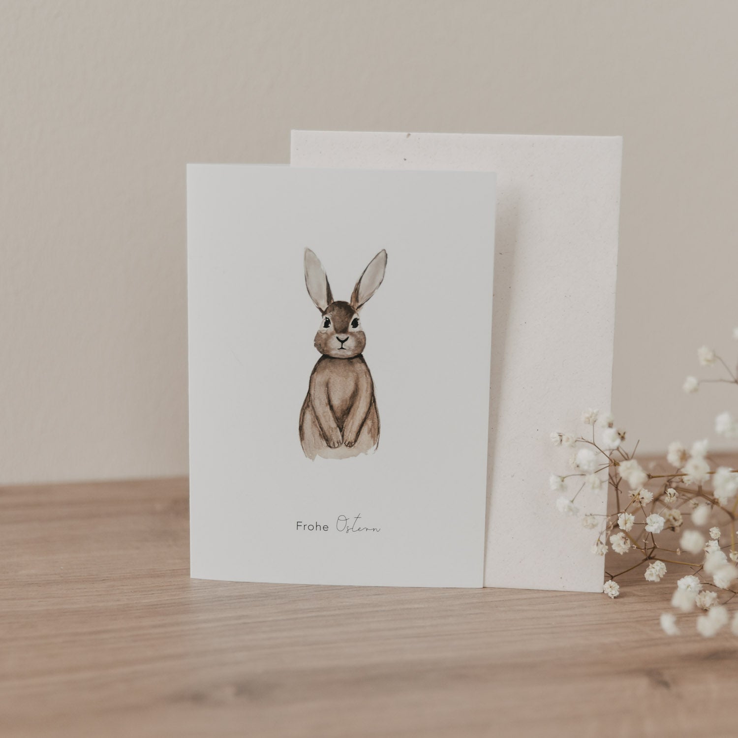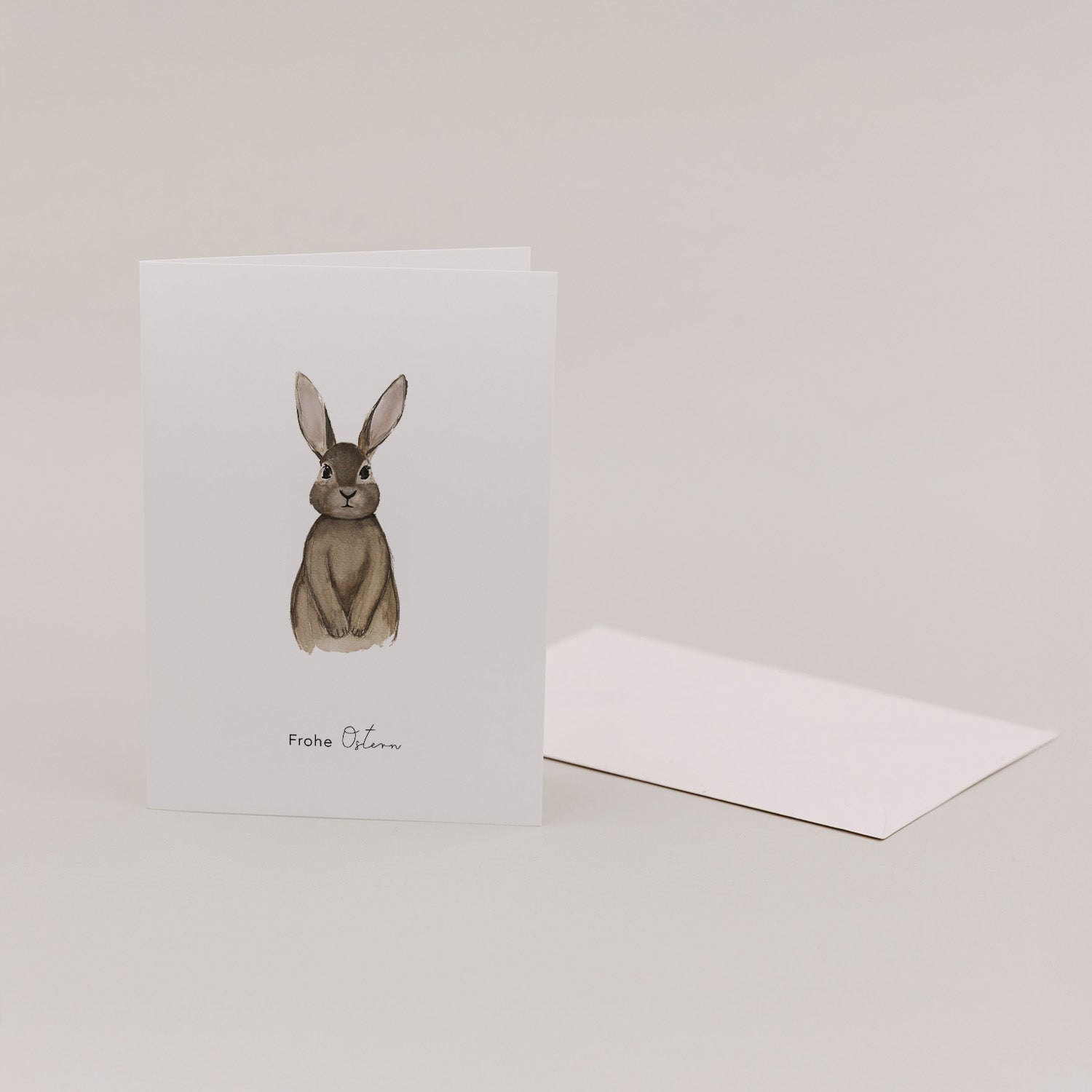 Versende deine Ostergrüße auf besonders charmante Weise mit unserer Klappkarte "Ostern". Das süße Aquarell-Hasenmotiv bringt Fröhlichkeit und Osterzauber in jedes Zuhause – perfekt, um deine Liebsten mit einer herzlichen Botschaft zu überraschen.