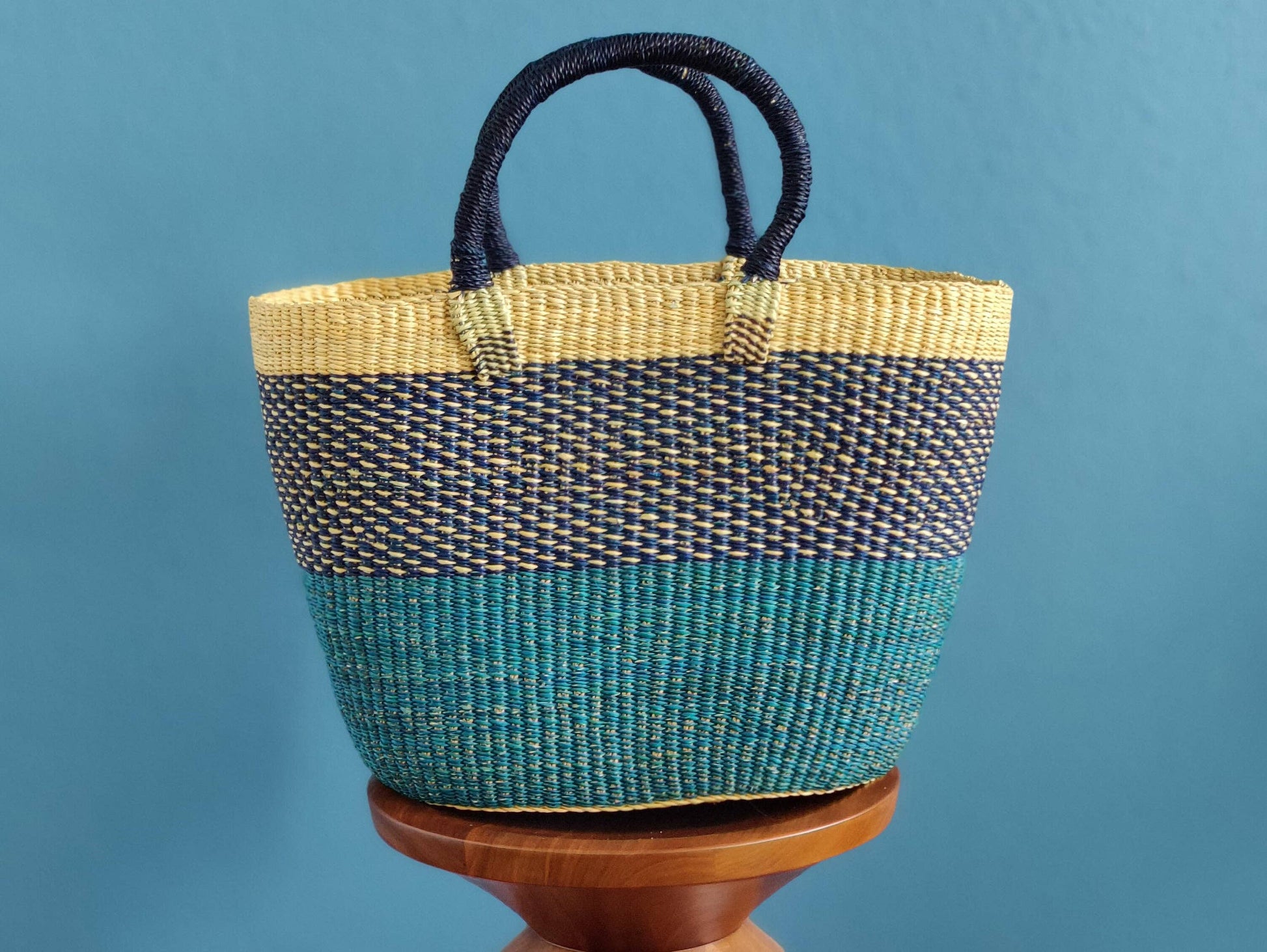 Delali wird wie ihre größere Schwestern in aufwändiger Handarbeit von erfahrenen Kunsthandwerkern im Norden von Ghana hergestellt. Delali ist etwas kleiner als Korbtasche Dela und ist in verschiedenen Farben und Mustern erhältlich.