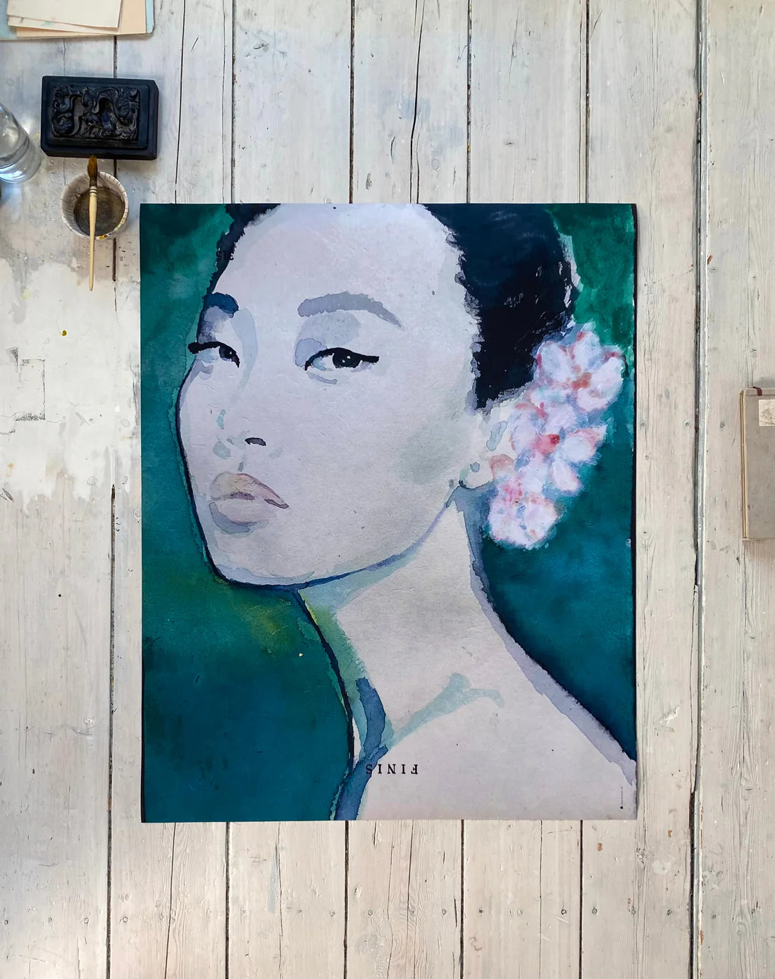 Das Originalgemälde ist mit einem japanischen Pinsel auf handgeschöpftem Papier gemalt und dieser Wandbehang ist eine schöne Qualitätsreproduktion auf Baumwolle