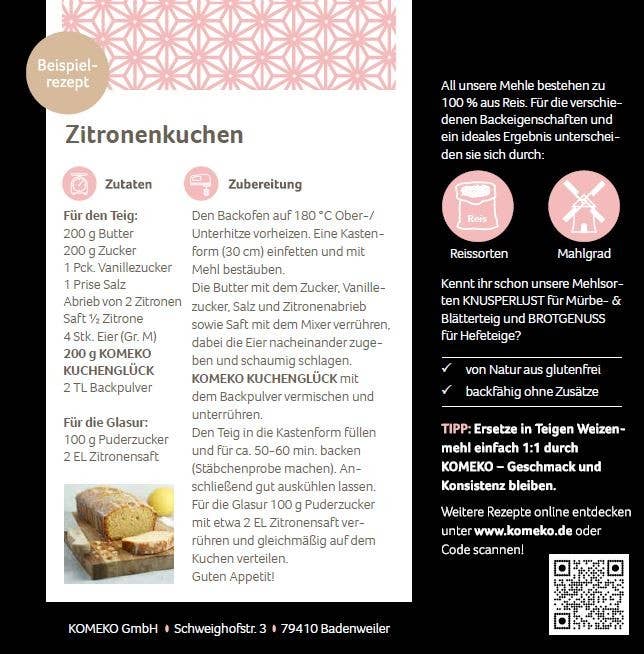 TIPP: Ersetze in Teigen Weizenmehl einfach 1:1 durch KOMEKO KUCHENGLÜCK – Geschmack und Konsistenz bleiben.