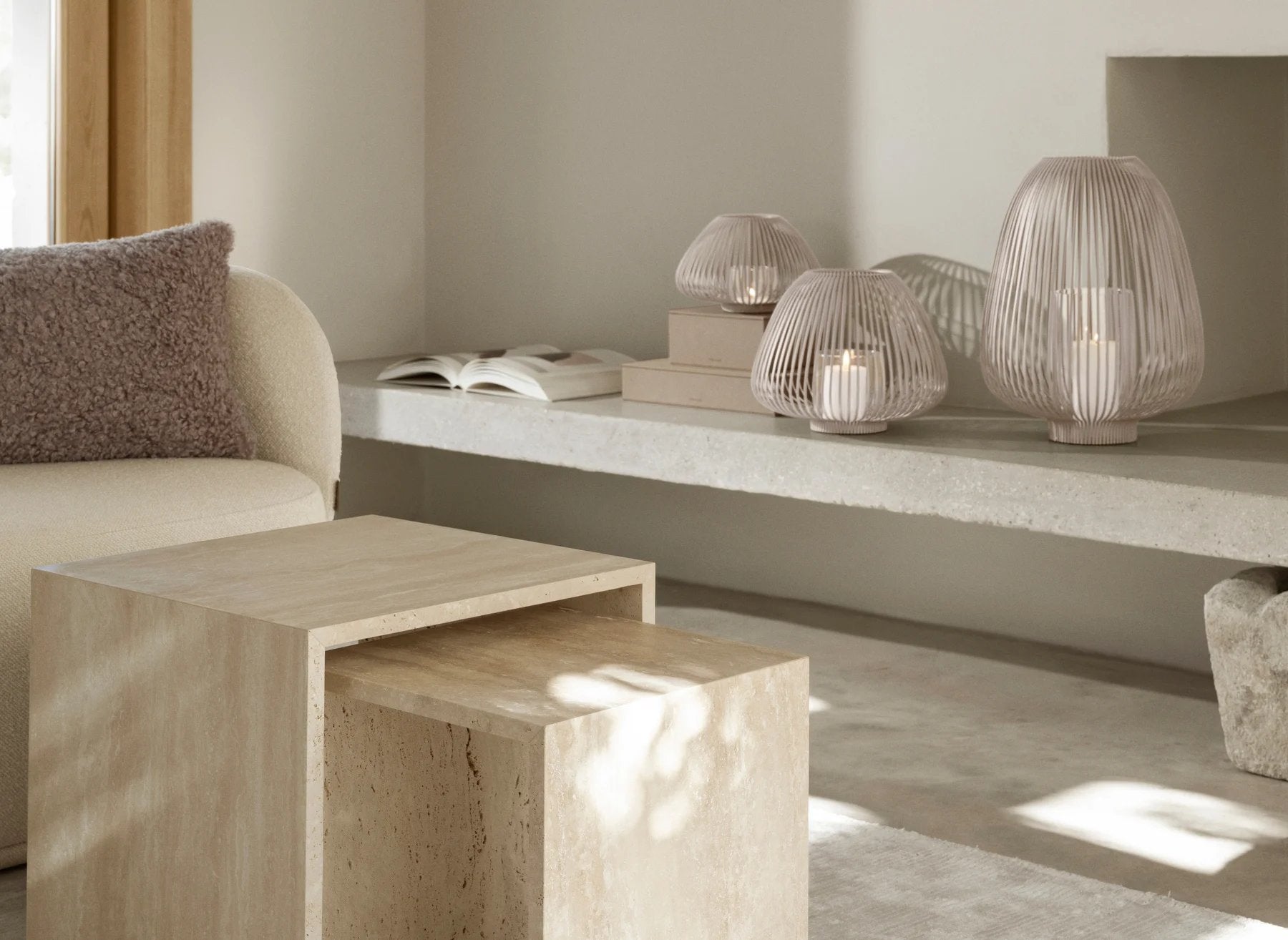 Die LYVA Indoorlaternen von blomus, entworfen von Nina Thöming, vereinen filigrane Eleganz mit modernem Design. Inspiriert von der beliebten LITO-Serie, präsentiert sich LYVA mit einer neuen Form und schmalen Metallstreben, die das flackernde Kerzenlicht in faszinierende Muster verwandeln. Ein mitgelieferter Glaszylinder sorgt für zusätzlichen Schutz.