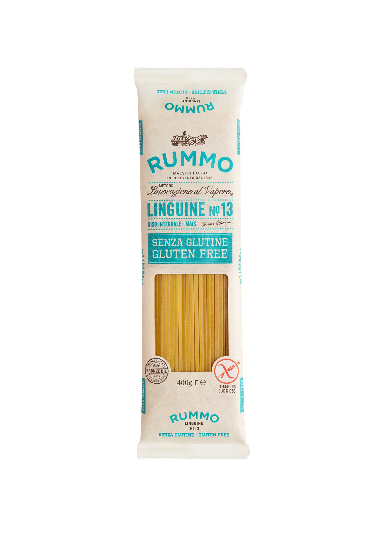 Die glutenfreien Linguine Nr. 13 von Rummo bieten echten Pasta-Genuss ohne Kompromisse. Hergestellt aus einer sorgfältig abgestimmten Mischung aus gelbem und weißem Mais, überzeugen sie mit einer perfekten al dente Konsistenz und einem authentischen Geschmack. Die Linguine nehmen Saucen besonders gut auf und sorgen für ein harmonisches Geschmackserlebnis.