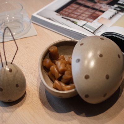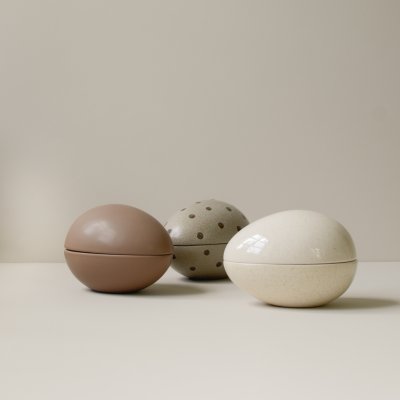Die Dose Nest ist die perfekte Aufbewahrung für süße Osterleckereien und ein stilvolles Deko-Element zugleich. Diese minimalistische Dose in Form eines Ostereis vereint modernes Design mit zeitloser Eleganz und fügt sich harmonisch in jede Osterdekoration ein.
