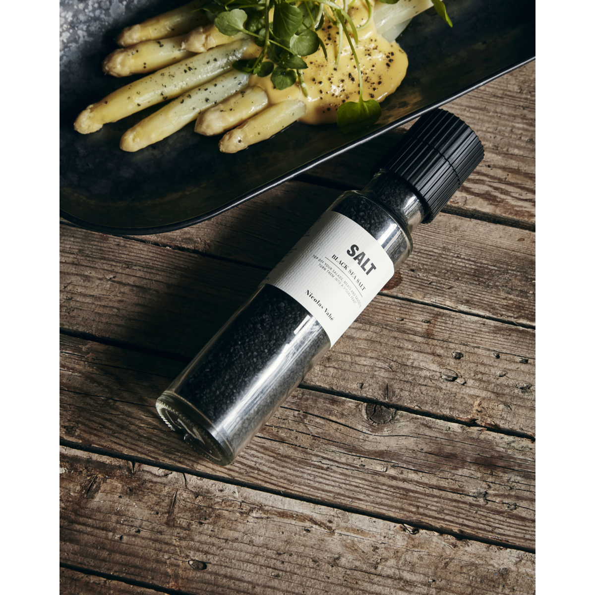 Verleihen Sie Ihren Gerichten ein bemerkenswertes Finish. Dieses Meersalz von Nicolas Vahé ist mit Aktivkohle vermischt und verleiht Ihren Gerichten einen besonderen Touch. Da wir mit den Augen essen, erhöht die tiefschwarze Farbe dieses Salzes die Attraktivität jeder Mahlzeit. Mit diesem Salz können Sie weichgekochte Eier, Salate, Fleisch und Soßen verfeinern und Ihre Gerichte zu einem optischen Genuss machen. Die Mühle wird mit einem Keramikmahlwerk geliefert, mit dem Sie fein gemahlene Gewürze erhalten.
