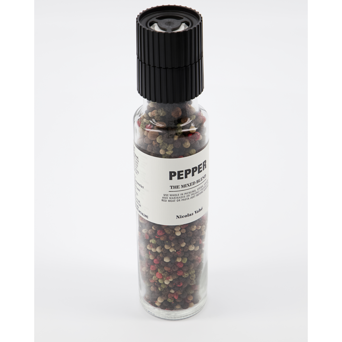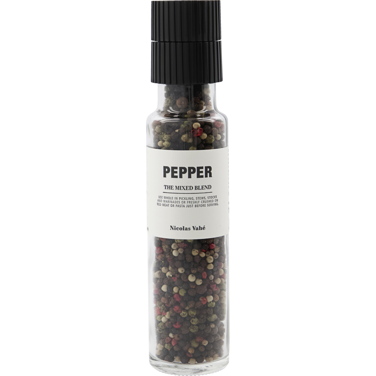 Genießen Sie die klassische Pfeffermischung von Nicolas Vahé mit fünf verschiedenen Pfeffersorten: weiße, rote, grüne, rosa und schwarze Pfefferkörner. Diese Pfeffermischung darf in keinem Haushalt fehlen, besonders in Kombination mit dem beliebten französischen Meersalz von Nicolas Vahé. Die Mühle wird mit einem Keramikmahlwerk geliefert, das die Gewürze fein mahlt. Dadurch werden die Öle freigesetzt, was für mehr Aroma und Geschmack in Ihren Gerichten sorgt.