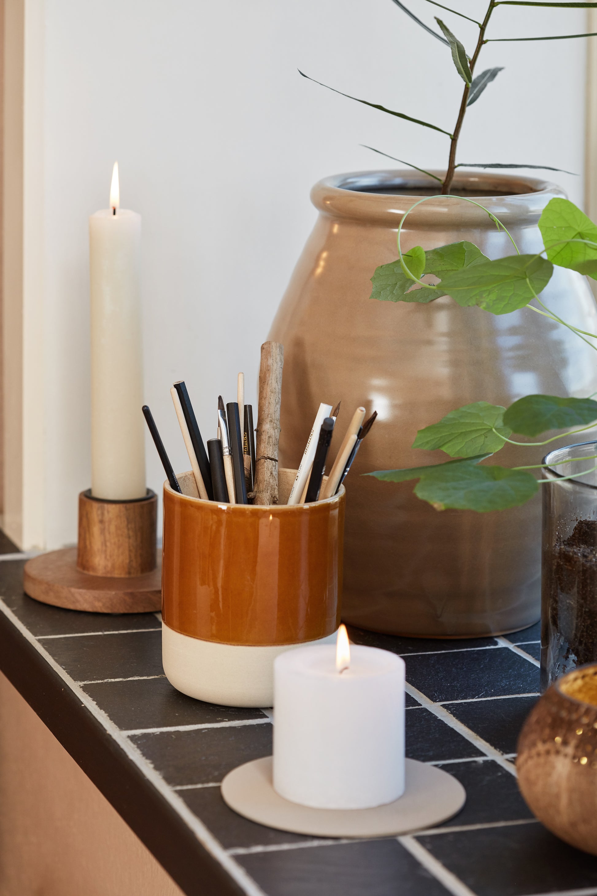 Schlicht, modern und zeitlos – dieser minimalistische Kerzenhalter vereint stilvolle Zurückhaltung mit funktionaler Eleganz. Die runde Eisenplatte bietet eine stabile Basis für Stumpenkerzen und setzt sie auf stilvolle Weise in Szene. Ob als Mittelpunkt eines festlich gedeckten Tisches oder als dezente Dekoration auf einem Sideboard – dieser Kerzenhalter fügt sich harmonisch in jedes Ambiente ein.