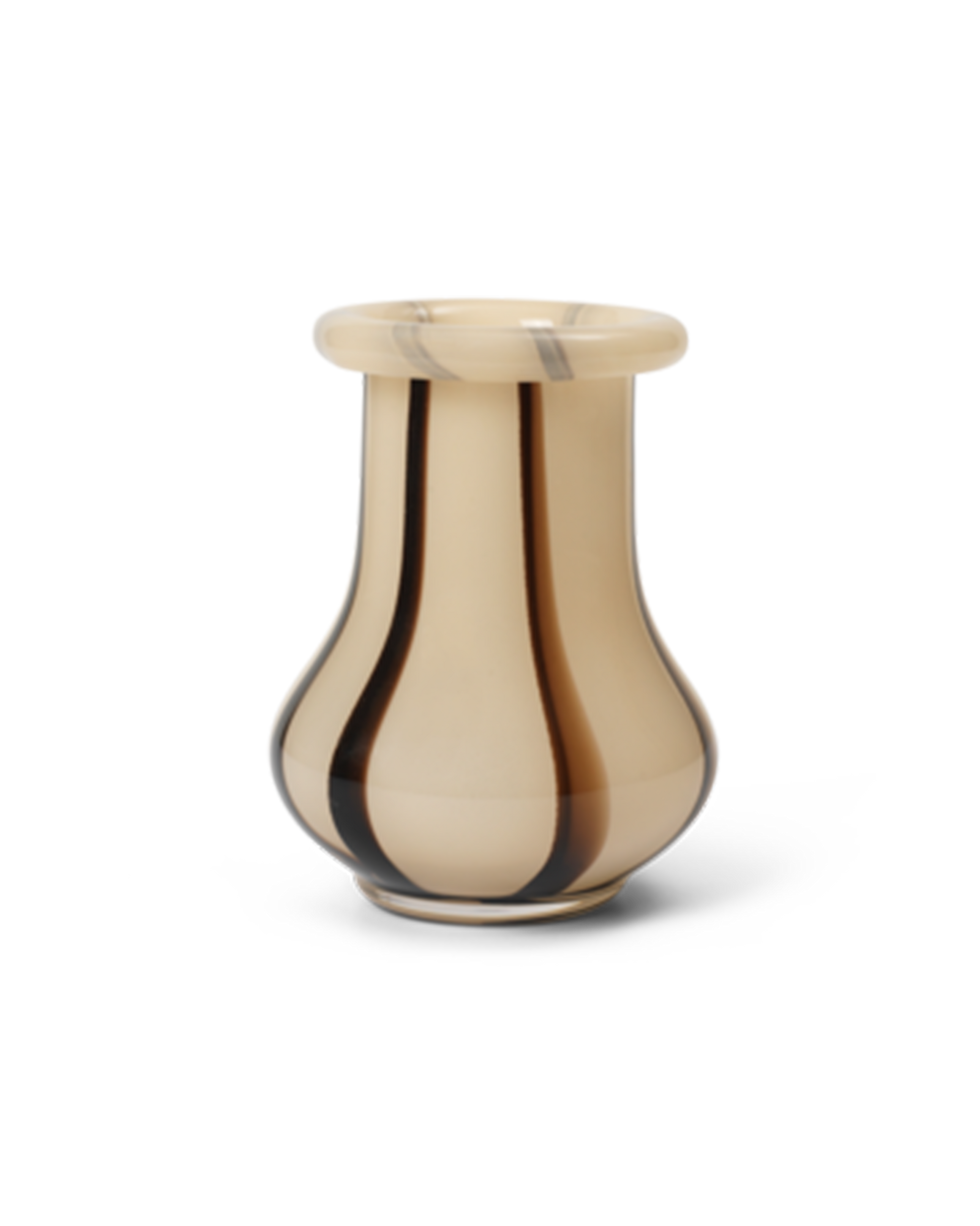 Die Riban-Vase, eine reizvolle Mischung aus Tradition und Kunstfertigkeit, ist von der klassischen Herstellung von Süßigkeiten inspiriert. Jedes Stück ist ein handgefertigtes Unikat, das mit seinem sorgfältig geformten, integrierten Linien die Kunstfertigkeit der Handwerker unter Beweis stellt. Das Design erinnert an Süßigkeiten, hat aber einen verspielten und skurrilen Charme.