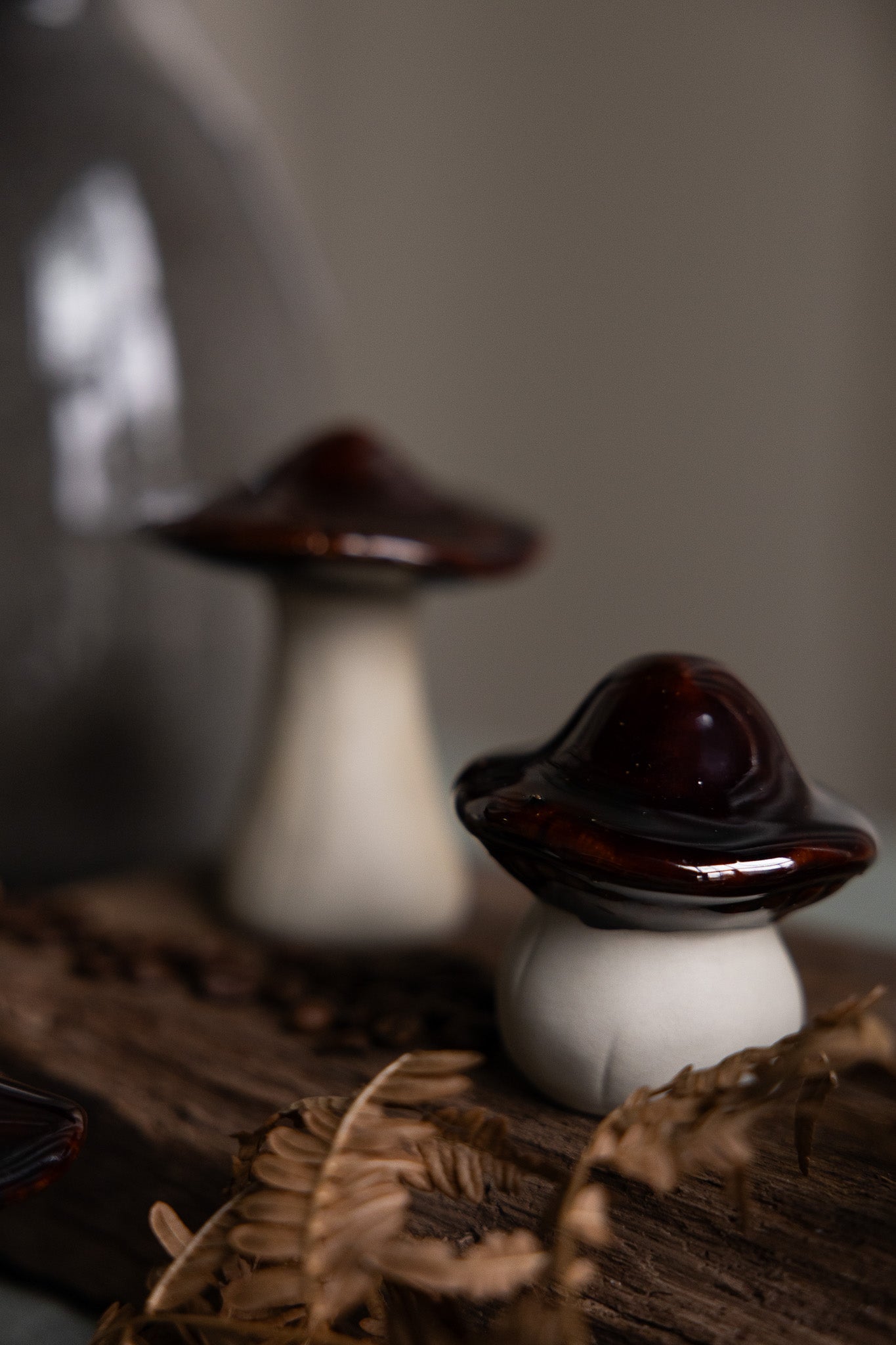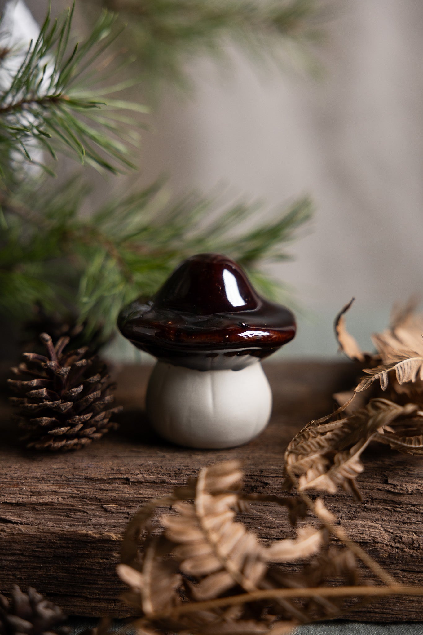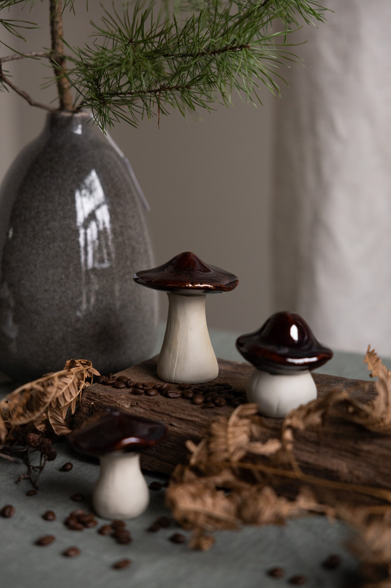 Dekoration aus Keramik. Dieser dekorative Pilz aus matter und glänzender Keramik bringt eine gemütliche Herbststimmung in Ihr Zuhause. Perfekt zu kombinieren mit anderen Größen.
