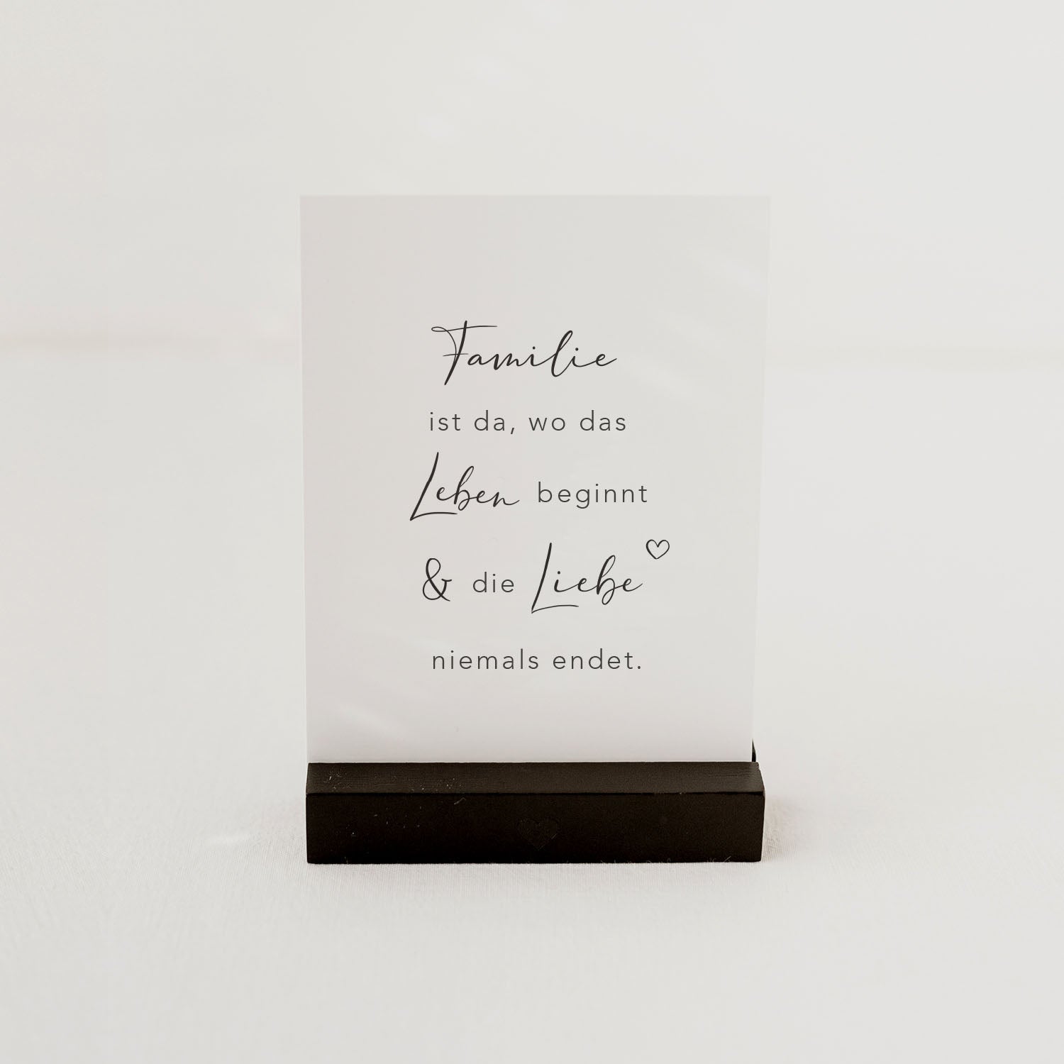 Die Eulenschnitt Spruchkarte „Familie ist …“ drückt auf liebevolle Weise aus, was Familie bedeutet. Mit ihrem schlichten, handschriftlichen Design und dem hochwertigen Naturpapier eignet sie sich wunderbar für viele Anlässe – ob Geburtstag, Muttertag, Vatertag oder einfach, um Danke zu sagen. Die minimalistische Gestaltung macht sie zeitlos und besonders persönlich. Auf der Rückseite bleibt genügend Platz für individuelle Botschaften.