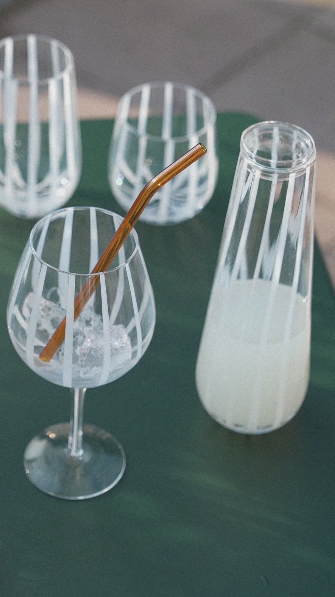 Die mundgeblasene Karaffe mit weißen Streifen ist ein echtes Schmuckstück für Ihren Tisch. Die handgearbeiteten weißen Streifen, die sich sanft um die Karaffe legen, verleihen ihr eine besondere Eleganz und zeitlose Schönheit. Durch die kunstvolle Verarbeitung ist jede Karaffe ein einzigartiges Unikat, das die hohe Qualität traditioneller Glasbläserkunst widerspiegelt. Perfekt für Wasser, Säfte oder Wein – diese Karaffe bringt Stil und Raffinesse in den Alltag und zu besonderen Anlässen. Ein Designstück, das Ästhetik und Funktion harmonisch miteinander verbindet und jede Tafel aufwertet.