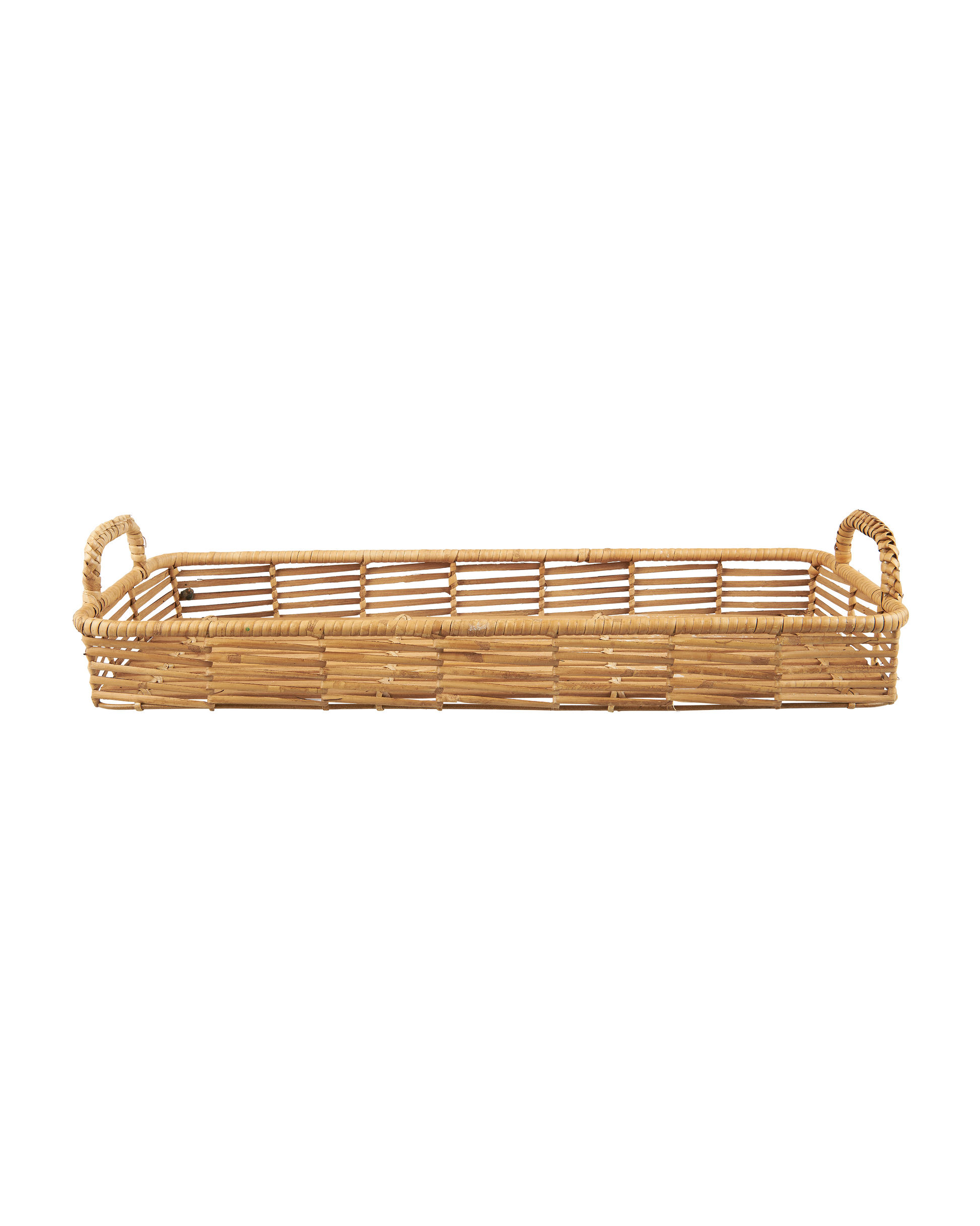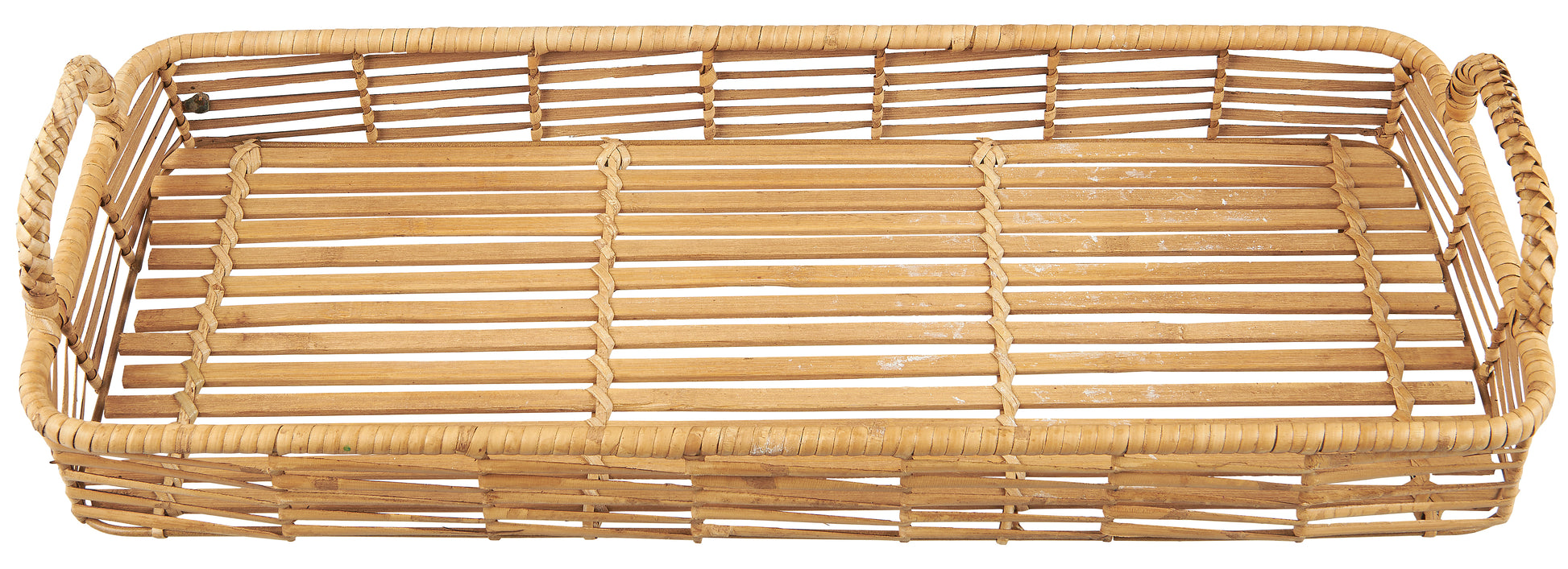 Dieses hochwertige Tablett aus Bambus verbindet Funktionalität mit natürlicher Eleganz. Mit seinen großzügigen Maßen (W: 23 cm, H: 10,5 cm, L: 52,5 cm) bietet es ausreichend Platz, um Frühstück ans Bett zu bringen, Getränke stilvoll zu servieren oder Deko-Elemente gekonnt in Szene zu setzen.