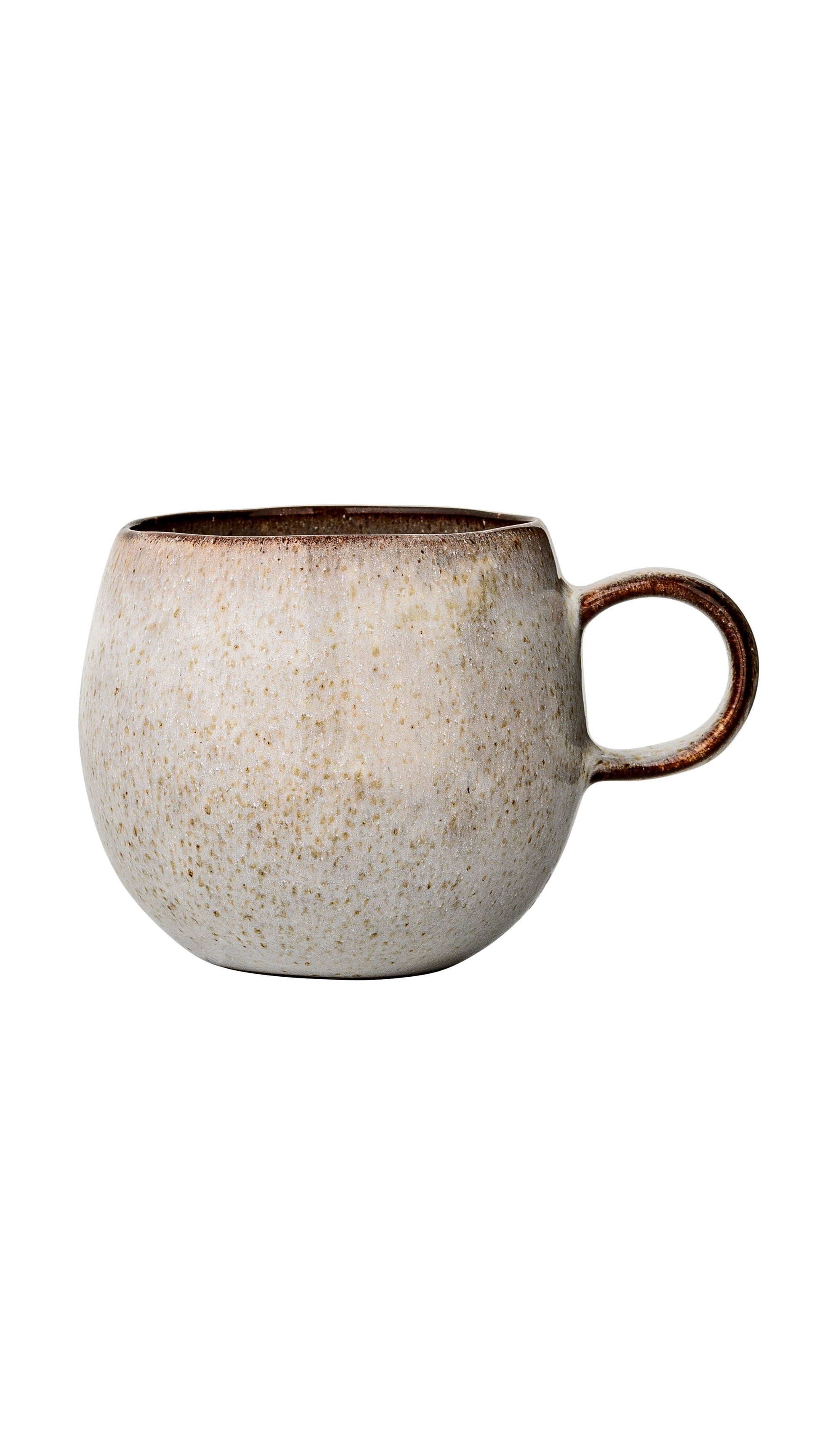 Der Sandrine Becher von Bloomingville ist aus Steingut in hellen Grau- und Brauntönen gefertigt. Der Becher verleiht jeder Tischdekoration einen natürlichen Touch mit seinem Gewicht, den ungleichmäßigen Kanten und der glänzenden, zarten Glasur. Der Becher ist handgefertigt, was zu Variationen in Farbe und Form führen kann. Der Krug ist mikrowellen- und spülmaschinenfest.