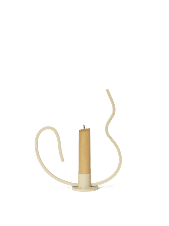 Der Valse-Kerzenständer hat eine fließende und wellenförmige Form, ganz so, als wäre er während des Tanzens erstarrt. Dieses aus pulverbeschichtetem Eisen gefertigte Stück ist von den anmutigen Bewegungen des Walzertanzes inspiriert und hat eine elegante Form mit einem geschwungenen Metallstab, der dazu einlädt, den Kerzenständer zu halten und mit sich zu tragen.