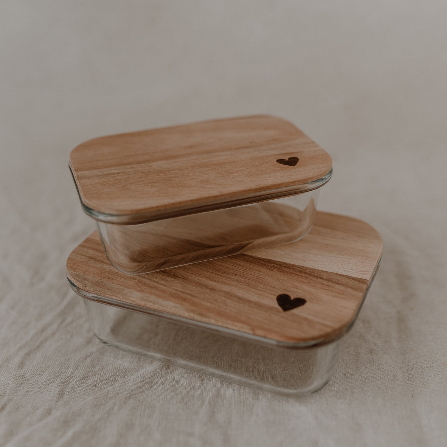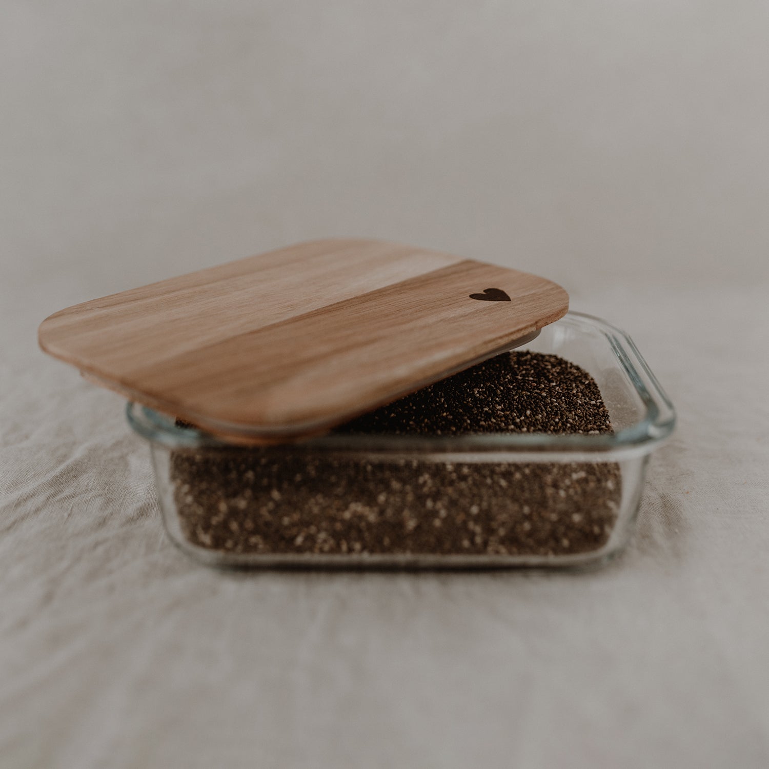 Wir können nicht glauben, wie schön man seine Vorräte aufbewahren kann mit unseren Vorratsbehältern aus Glas. Alle Gläser bestehen aus hochwertigem und strapazierfähigem Borosilikatglas. Sie werden mit einem Akazienholz Deckel geliefert, der ein wundervolles Herz graviert hat. Borosilikatglas ist ein sehr robustes Material, das spülmaschinenfest und zu 100% recyclebar ist. Unsere Deckel werden aus unbehandeltem Akazienholz gefertigt, sodass jeder Deckel ein Unikat ist und einzigartig in seiner Struktur. Ein Silikonring zum luftdichtem Verschließen ist natürlich auch mit dabei.