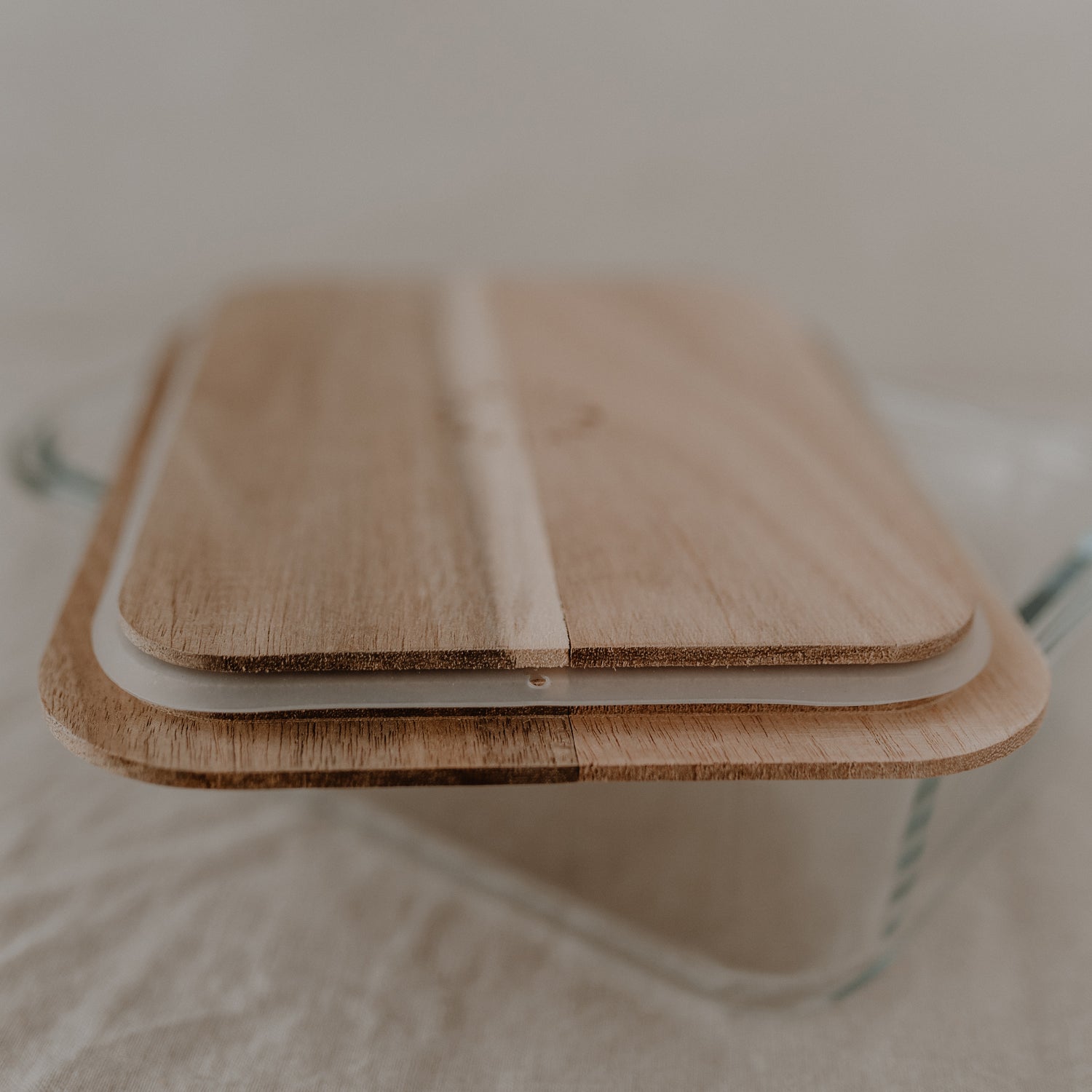 Die Akazienholzdeckel mit nur mit einem feuchten Tuch abwischen und direkt abtrocknen, damit sich das Holz nicht verzieht.