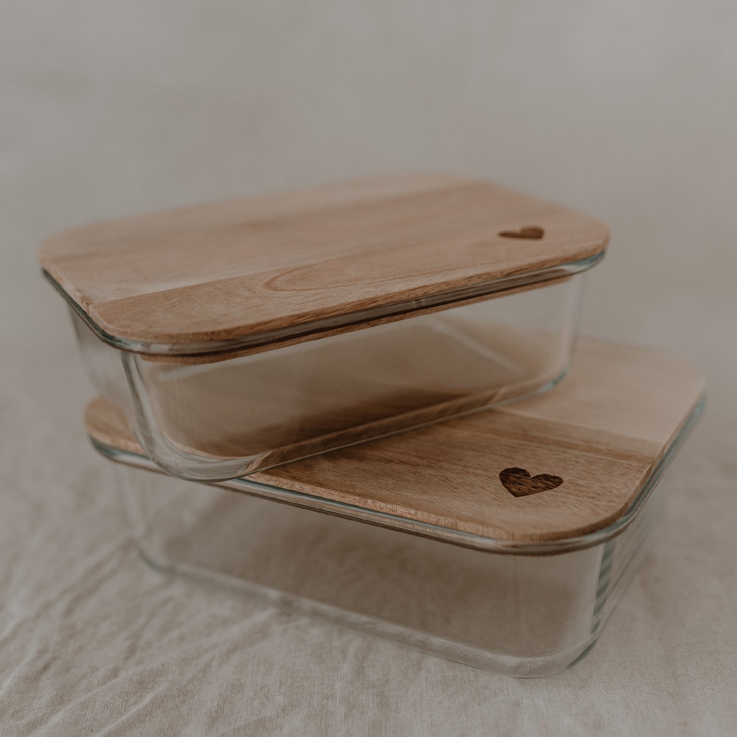 Wir können nicht glauben, wie schön man seine Vorräte aufbewahren kann mit unseren Vorratsbehältern aus Glas. Alle Gläser bestehen aus hochwertigem und strapazierfähigem Borosilikatglas. Sie werden mit einem Akazienholz Deckel geliefert, der ein wundervolles Herz graviert hat. Borosilikatglas ist ein sehr robustes Material, das spülmaschinenfest und zu 100% recyclebar ist. Unsere Deckel werden aus unbehandeltem Akazienholz gefertigt, sodass jeder Deckel ein Unikat ist und einzigartig in seiner Struktur. Ein Silikonring zum luftdichtem Verschließen ist natürlich auch mit dabei.