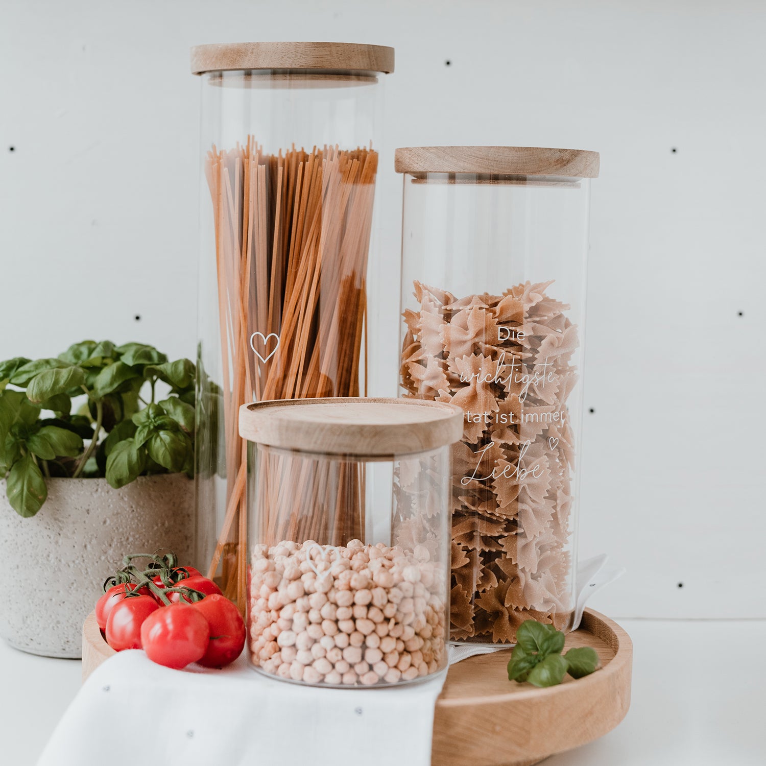 Wir können nicht glauben, wie schön man seine Vorräte aufbewahren kann mit unseren Vorratsgläser aus Glas. Alle Gläser bestehen aus hochwertigem und strapazierfähigem Borosilikatglas und sind mit einem weißem Druck veredelt. Sie werden mit einem Akazienholz Deckel geliefert, der unser Logo und unser Motto "Konfetti für die Seele" eingraviert hat. Borosilikatglas ist ein sehr robustes Material, das spülmaschinenfest und zu 100% recyclebar ist. Unsere Deckel werden aus unbehandeltem Akazienholz gefertigt, sodass jeder Deckel ein Unikat ist und einzigartig in seiner Struktur. Ein Silikonring zum luftdichtem Verschließen ist natürlich auch mit dabei.