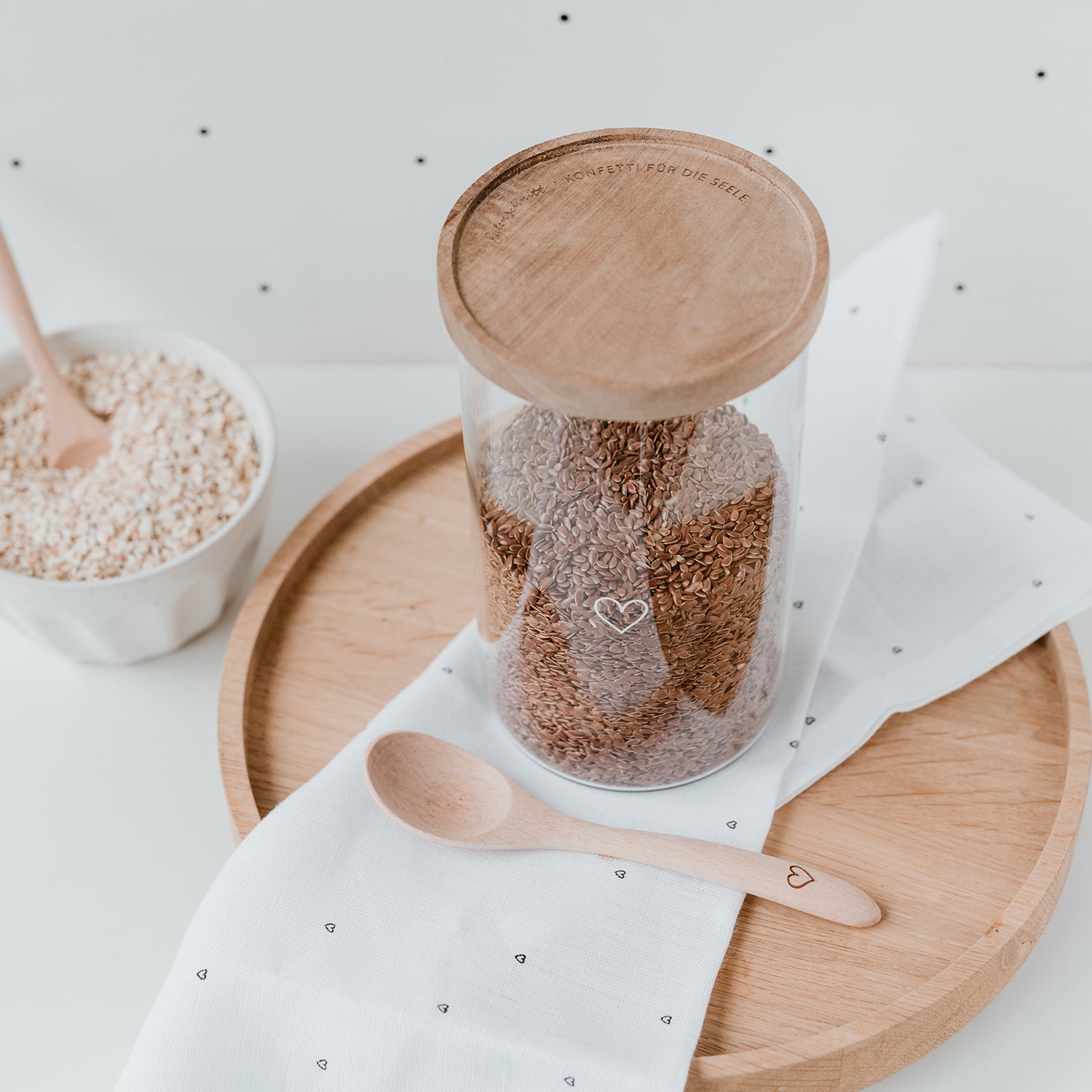 Wir können nicht glauben, wie schön man seine Vorräte aufbewahren kann mit unseren Vorratsgläser aus Glas. Alle Gläser bestehen aus hochwertigem und strapazierfähigem Borosilikatglas und sind mit einem weißem Druck veredelt. Sie werden mit einem Akazienholz Deckel geliefert, der unser Logo und unser Motto "Konfetti für die Seele" eingraviert hat. Borosilikatglas ist ein sehr robustes Material, das spülmaschinenfest und zu 100% recyclebar ist. Unsere Deckel werden aus unbehandeltem Akazienholz gefertigt, sodass jeder Deckel ein Unikat ist und einzigartig in seiner Struktur. Ein Silikonring zum luftdichten Verschließen ist natürlich auch mit dabei.